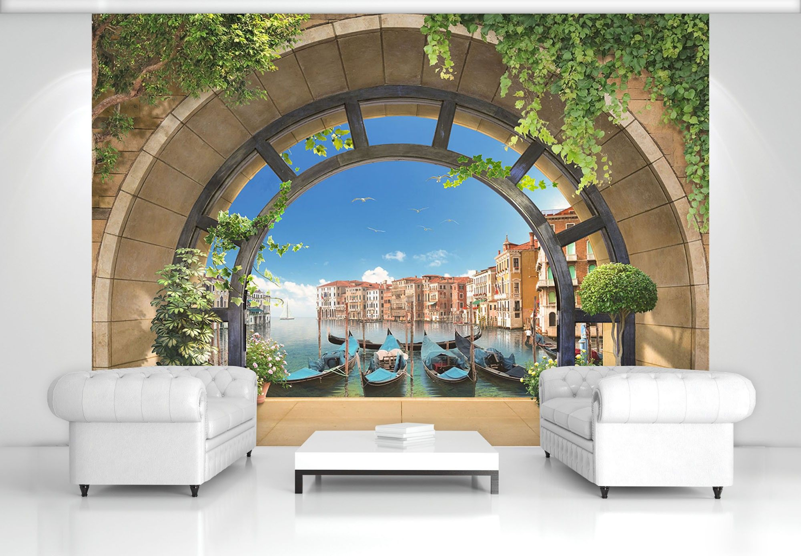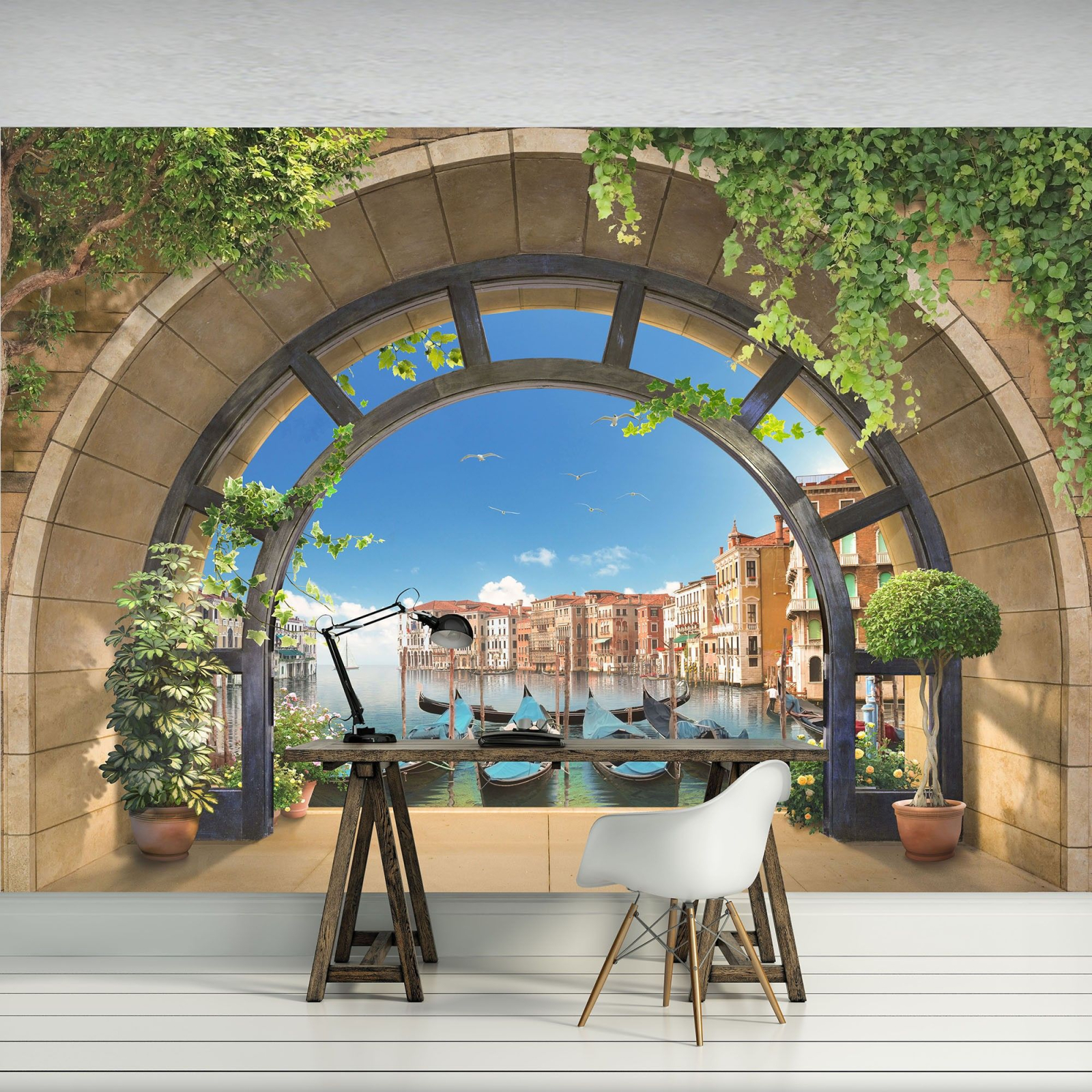 Флис Фототапет Каменен свод, прозорец с изглед към каналите, Венеция