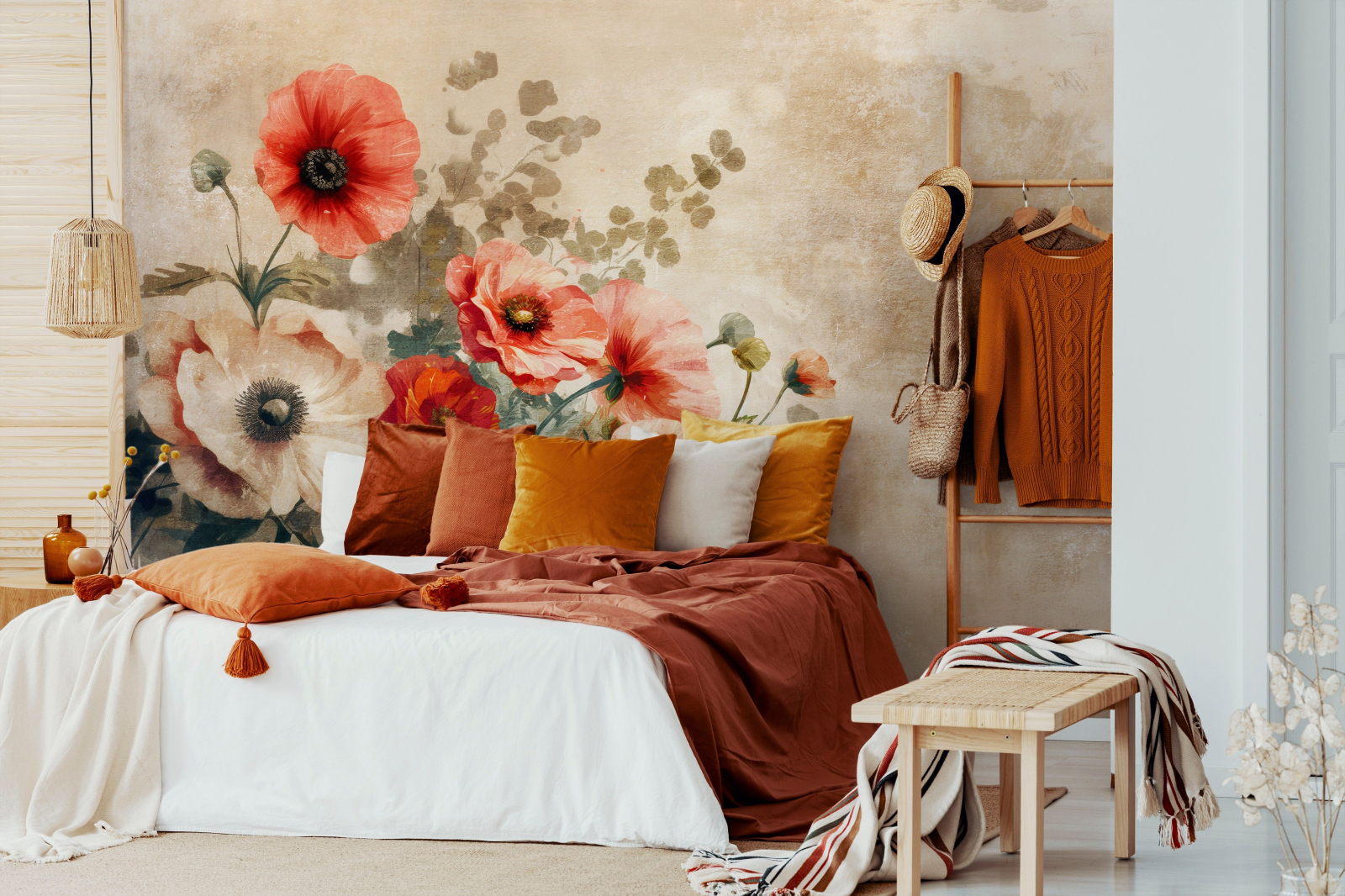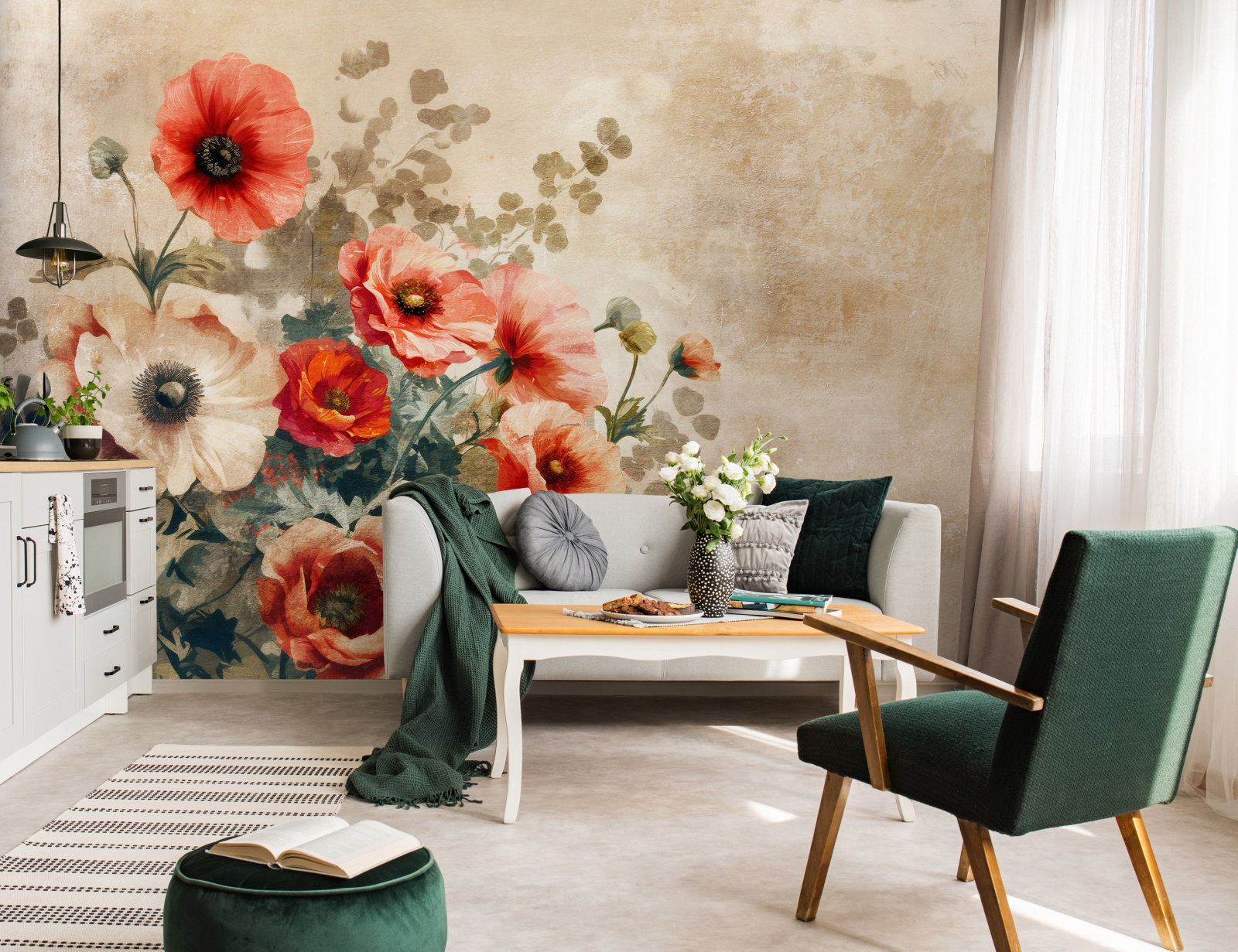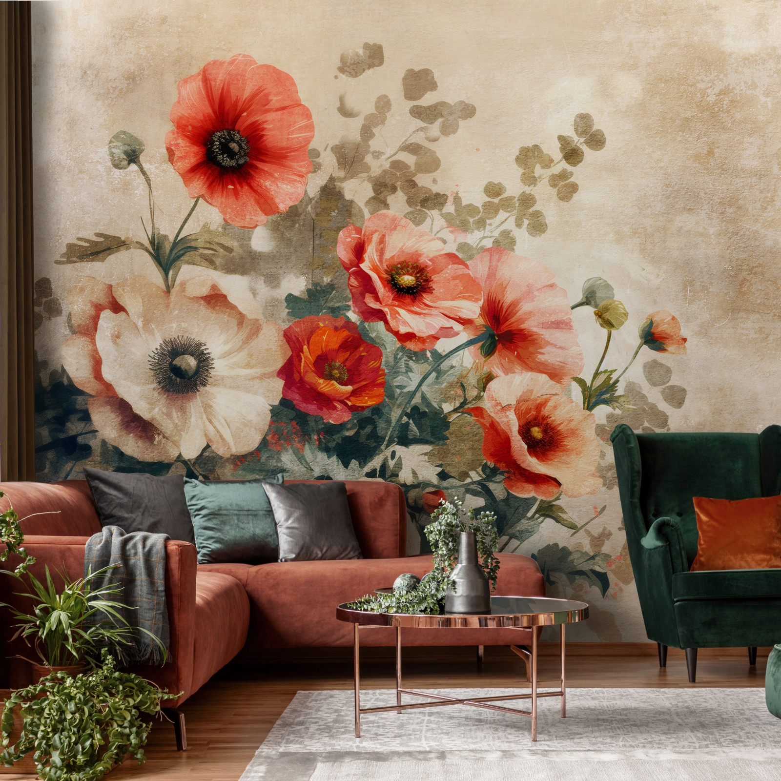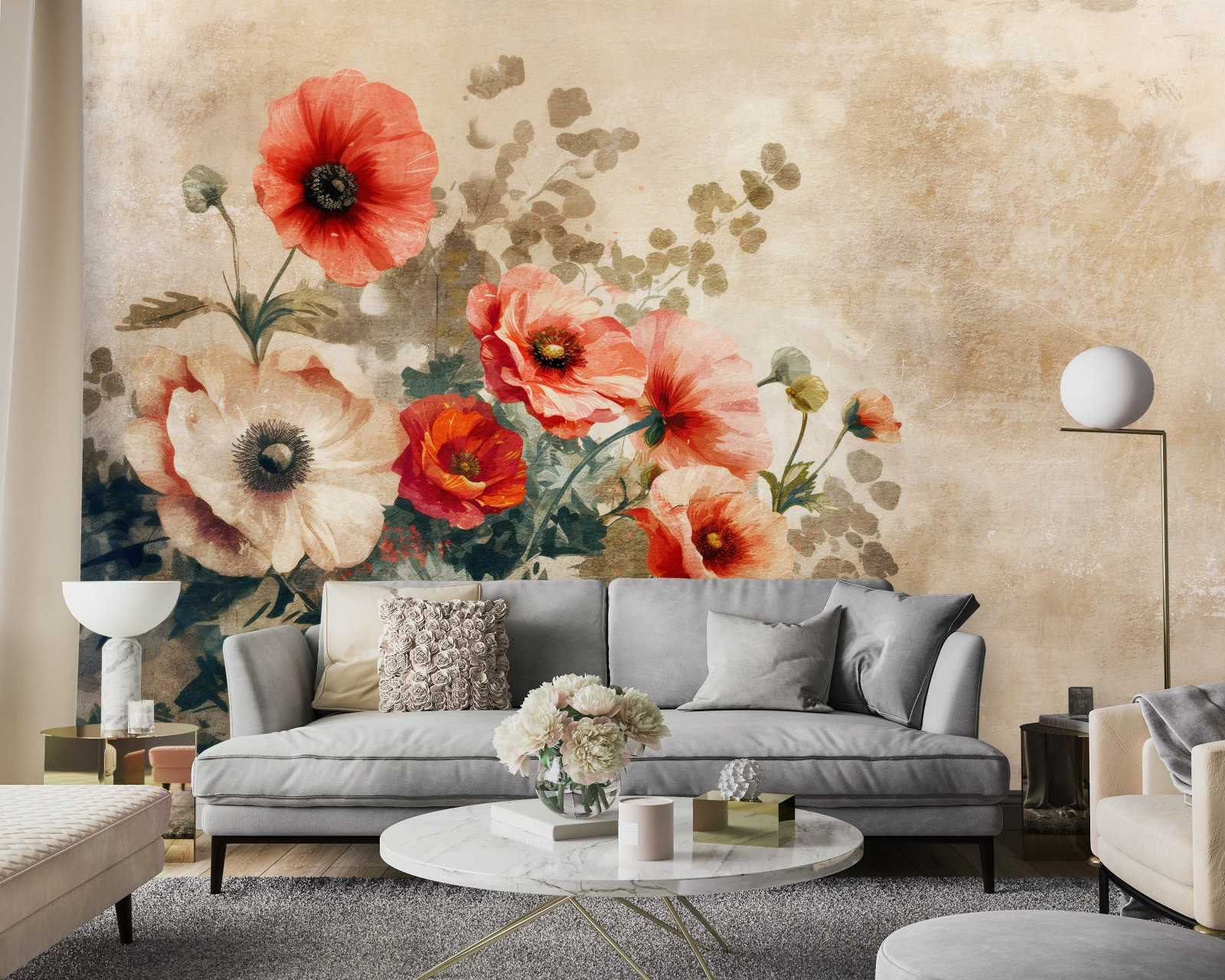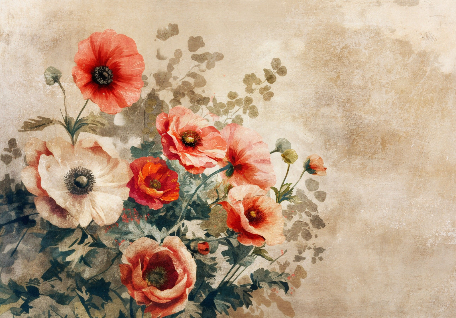 Флис Фототапет Арт композиция от цветя, рисувани, винтидж стил