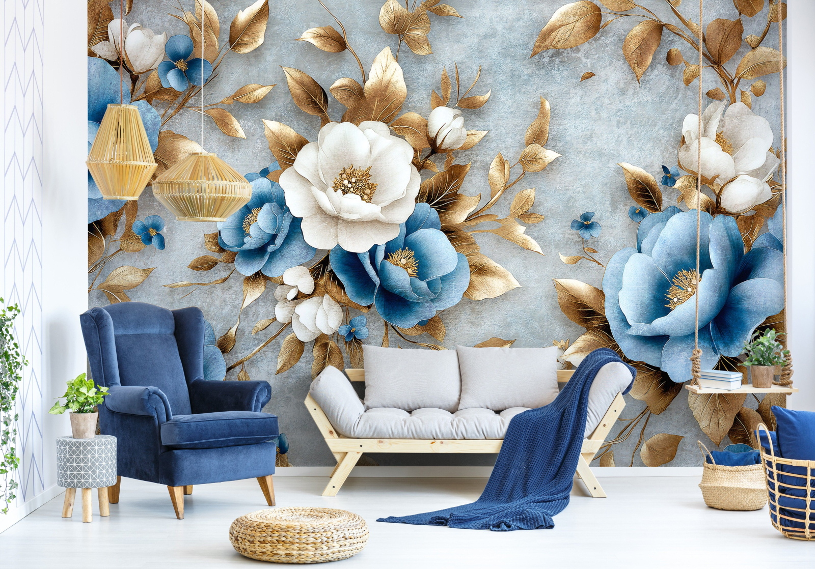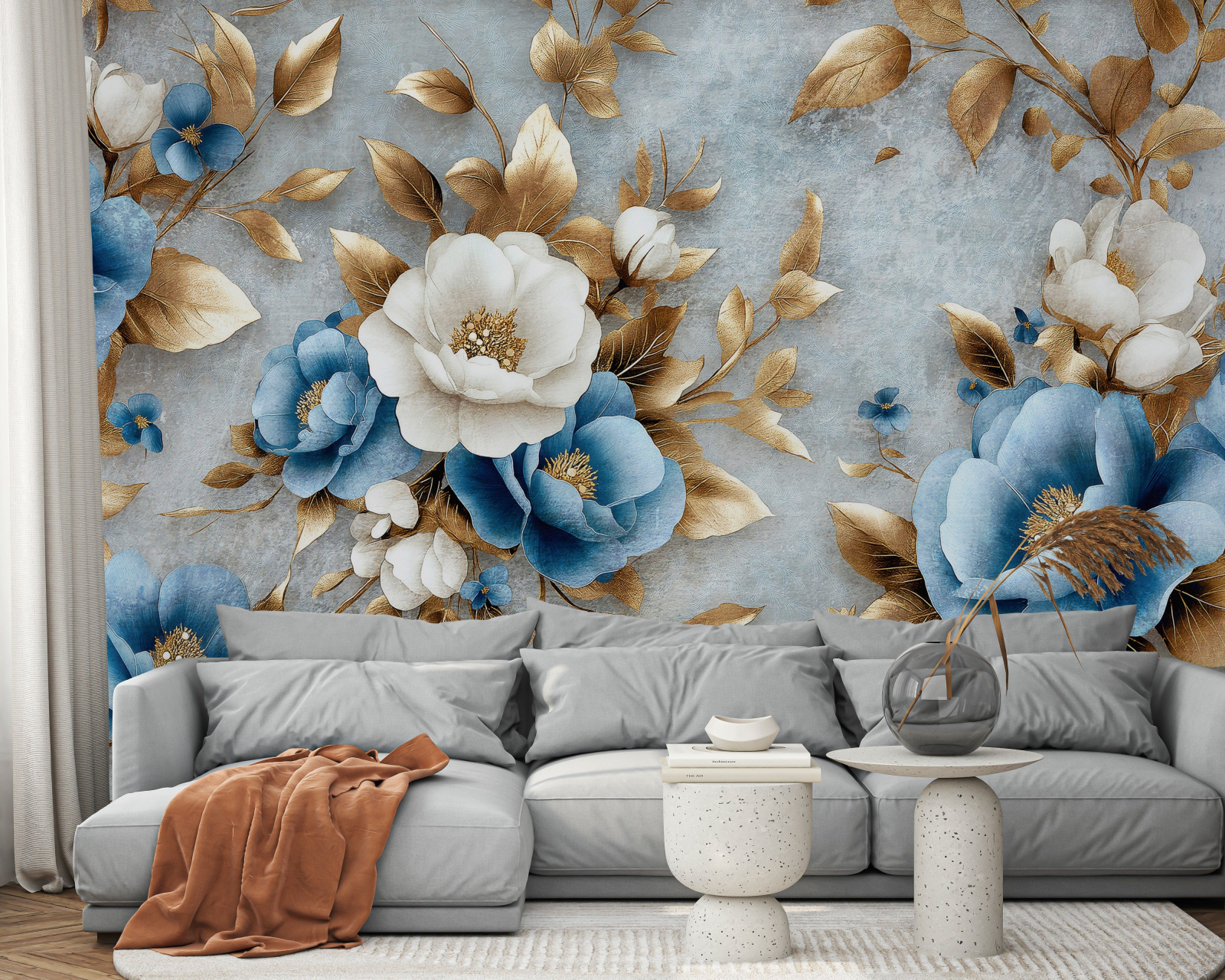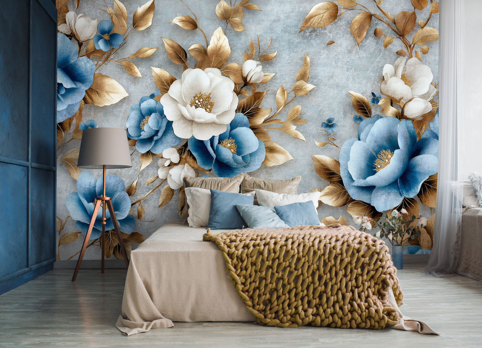 Флис Фототапет Арт композиция от цветя, рисувани, винтидж стил