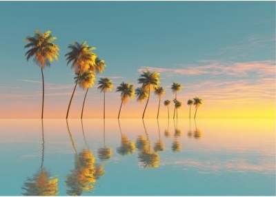 Флис Фототапет Тропически пейзаж , акварел