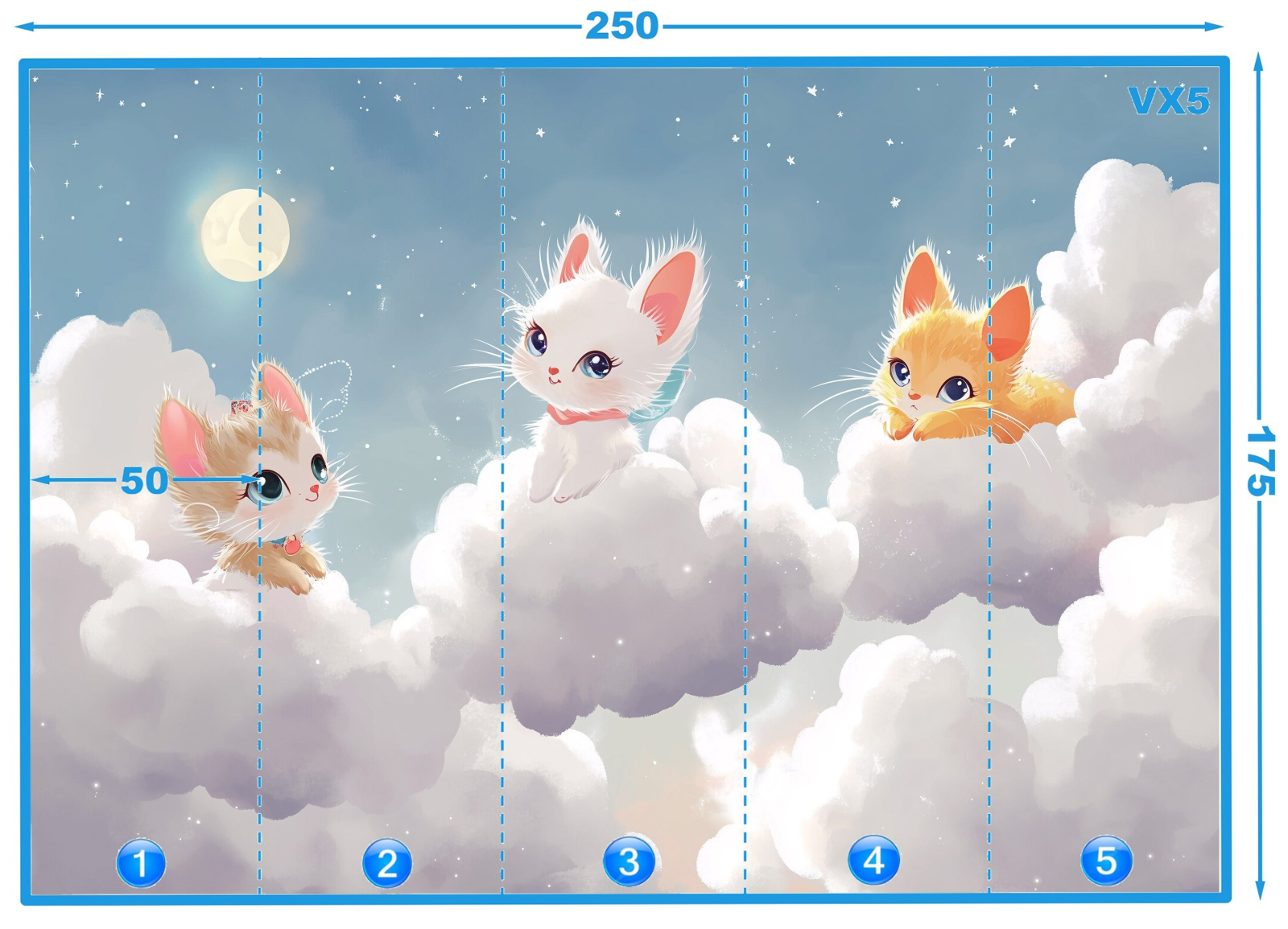 Части: номерирани вертикални ленти, широки 50cm, лепят се една до друга, без припокриване