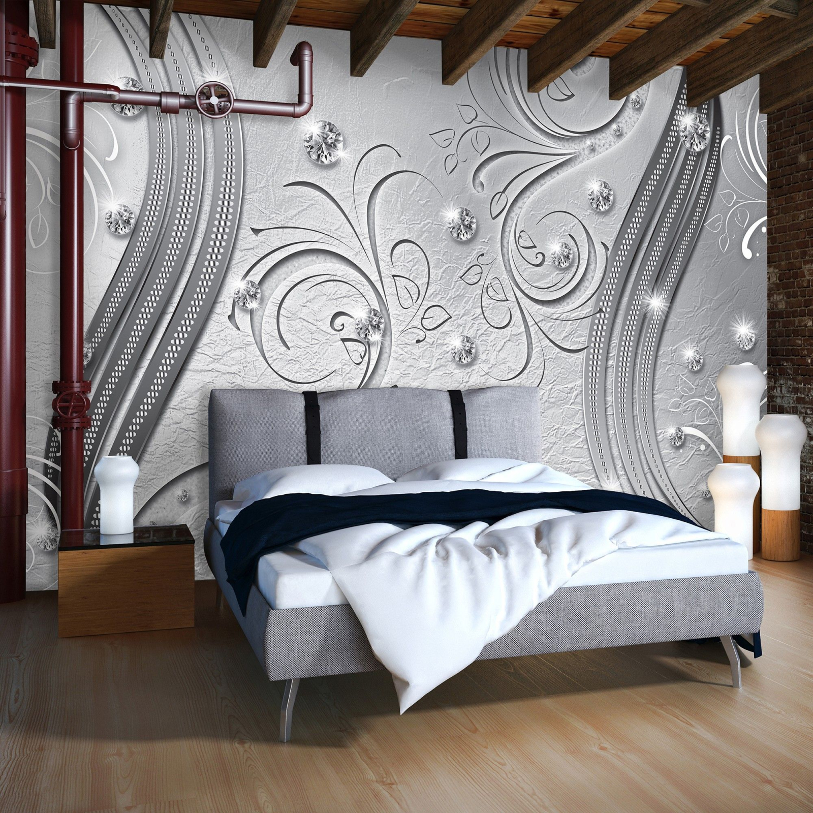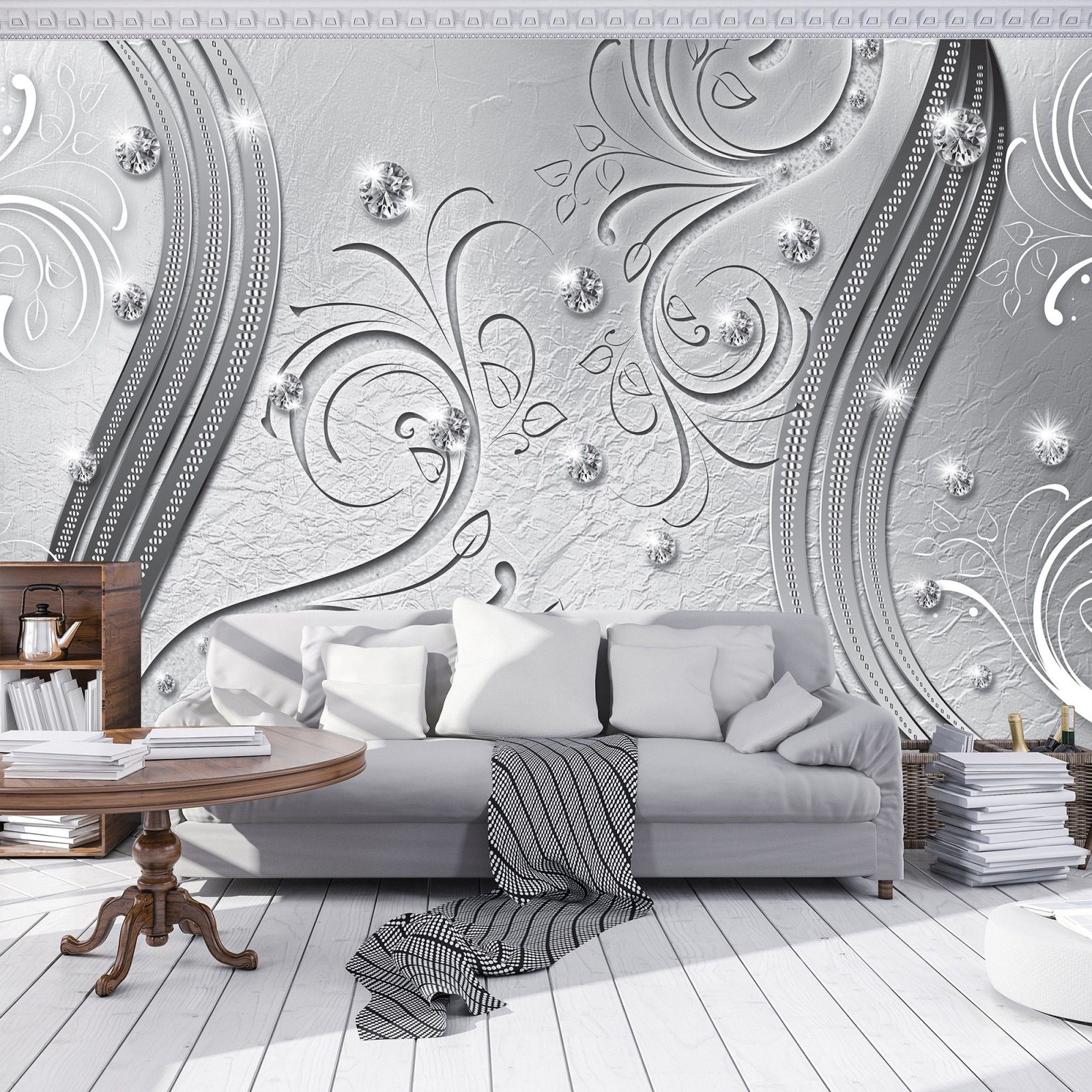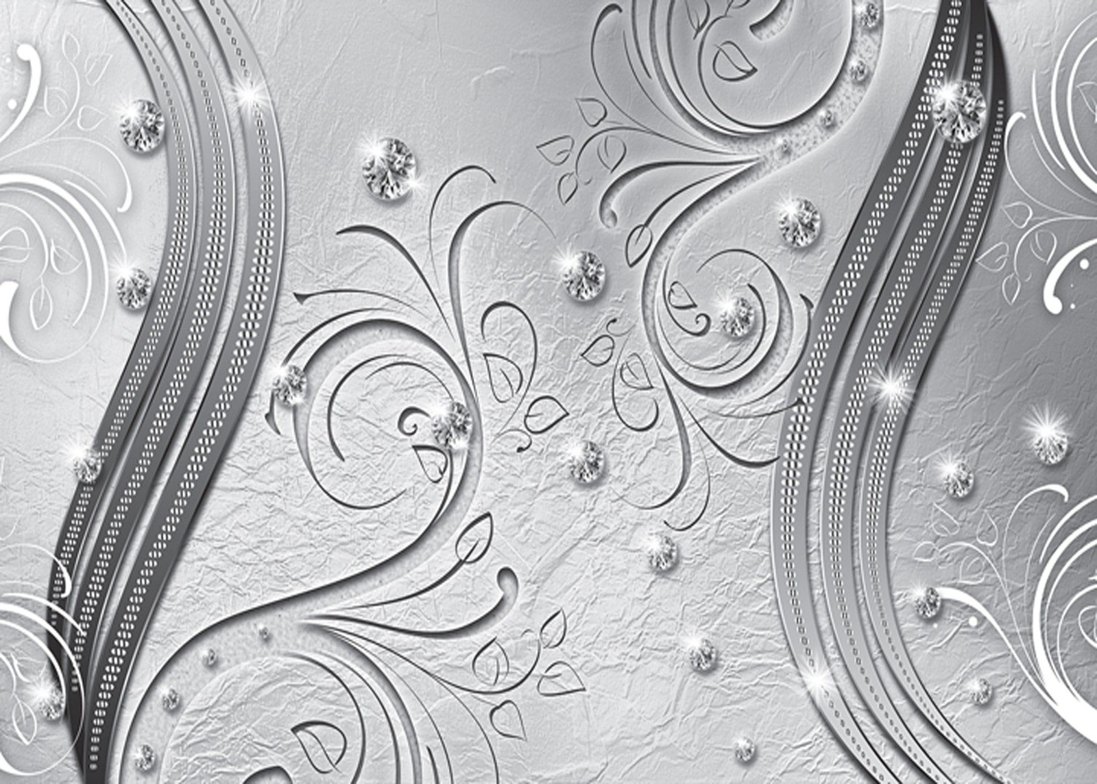 Флис Фототапет 3D Метални орнамени, кристали и диаманти, сиво