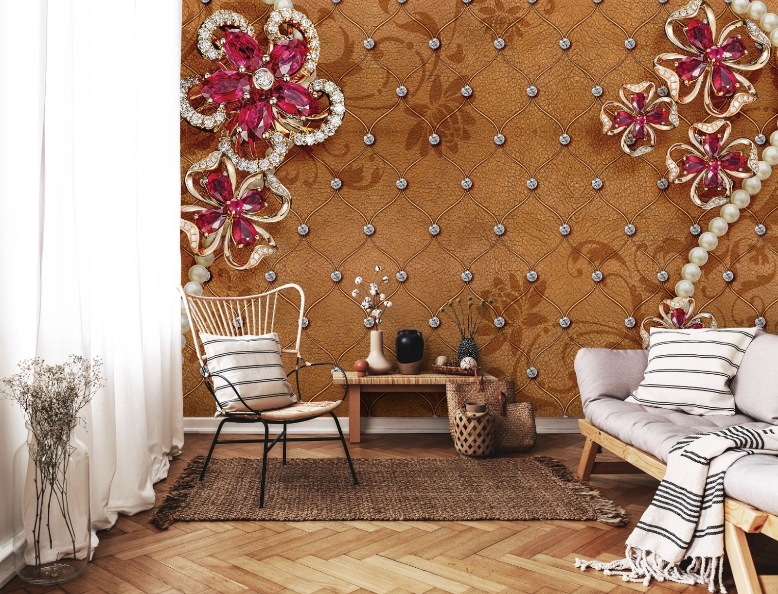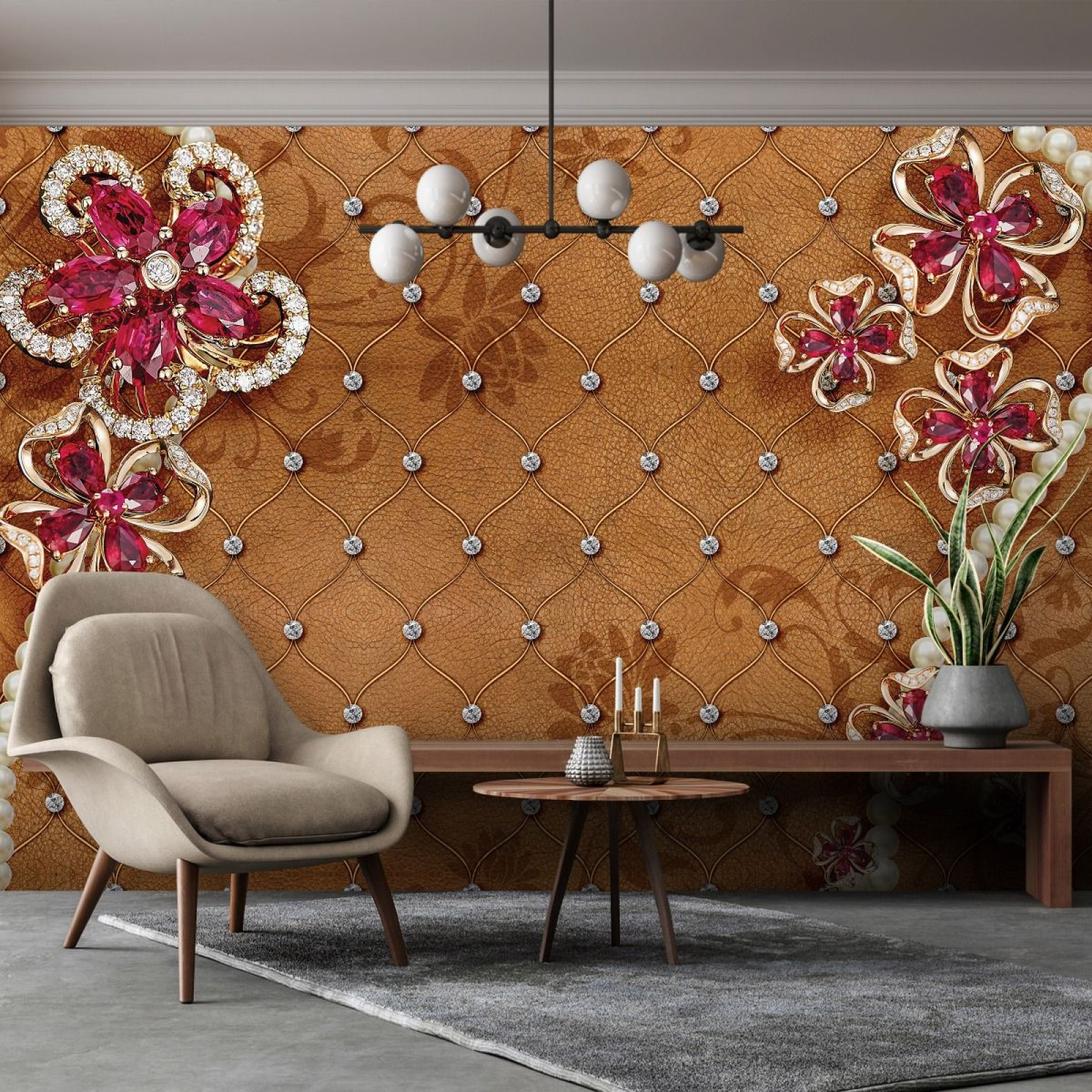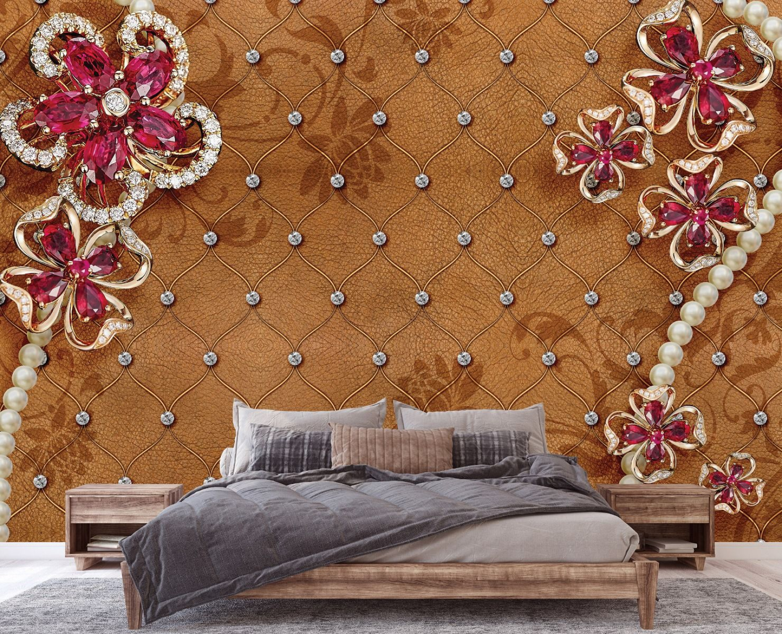 Флис Фототапет Кристали, рубини и злато, 3D композиция