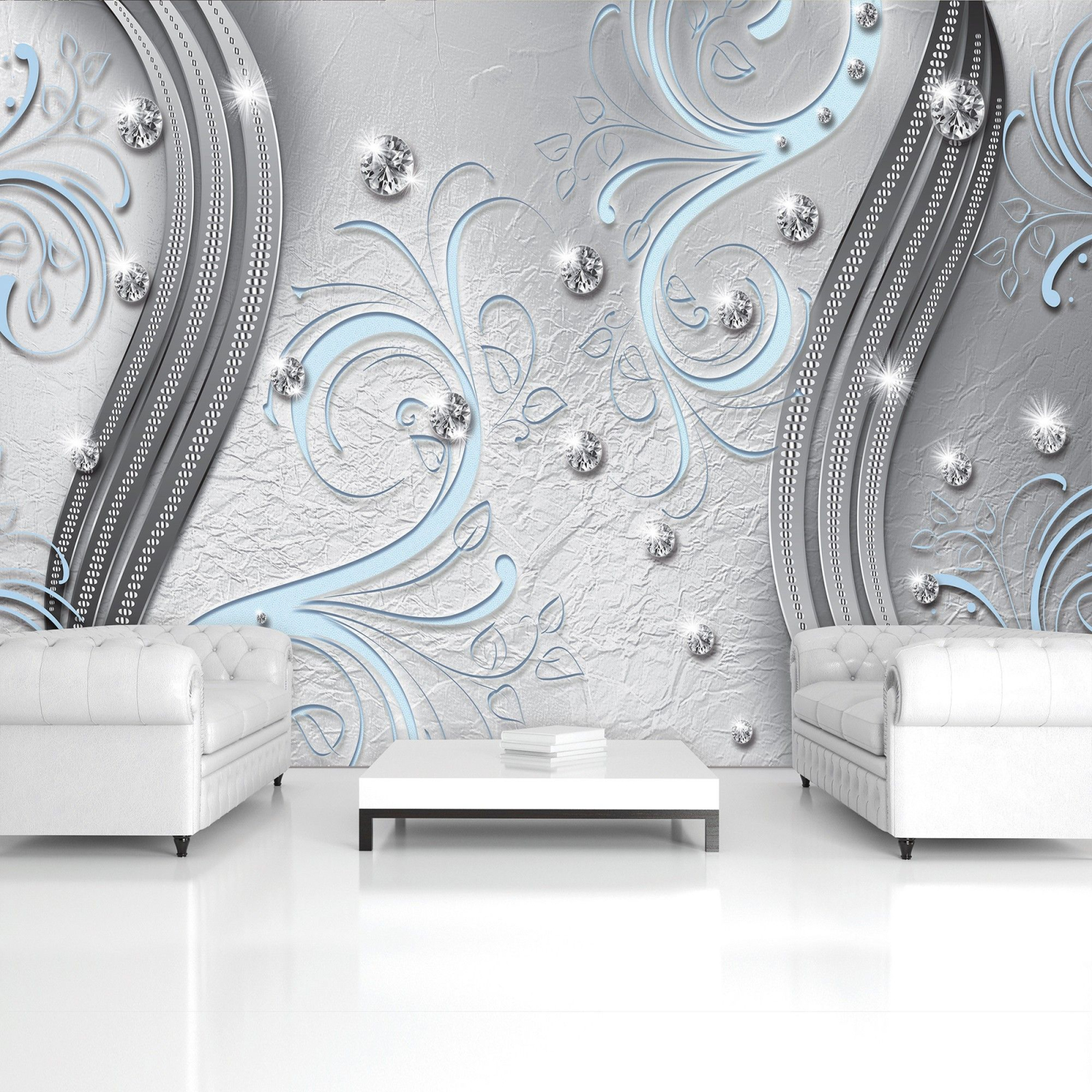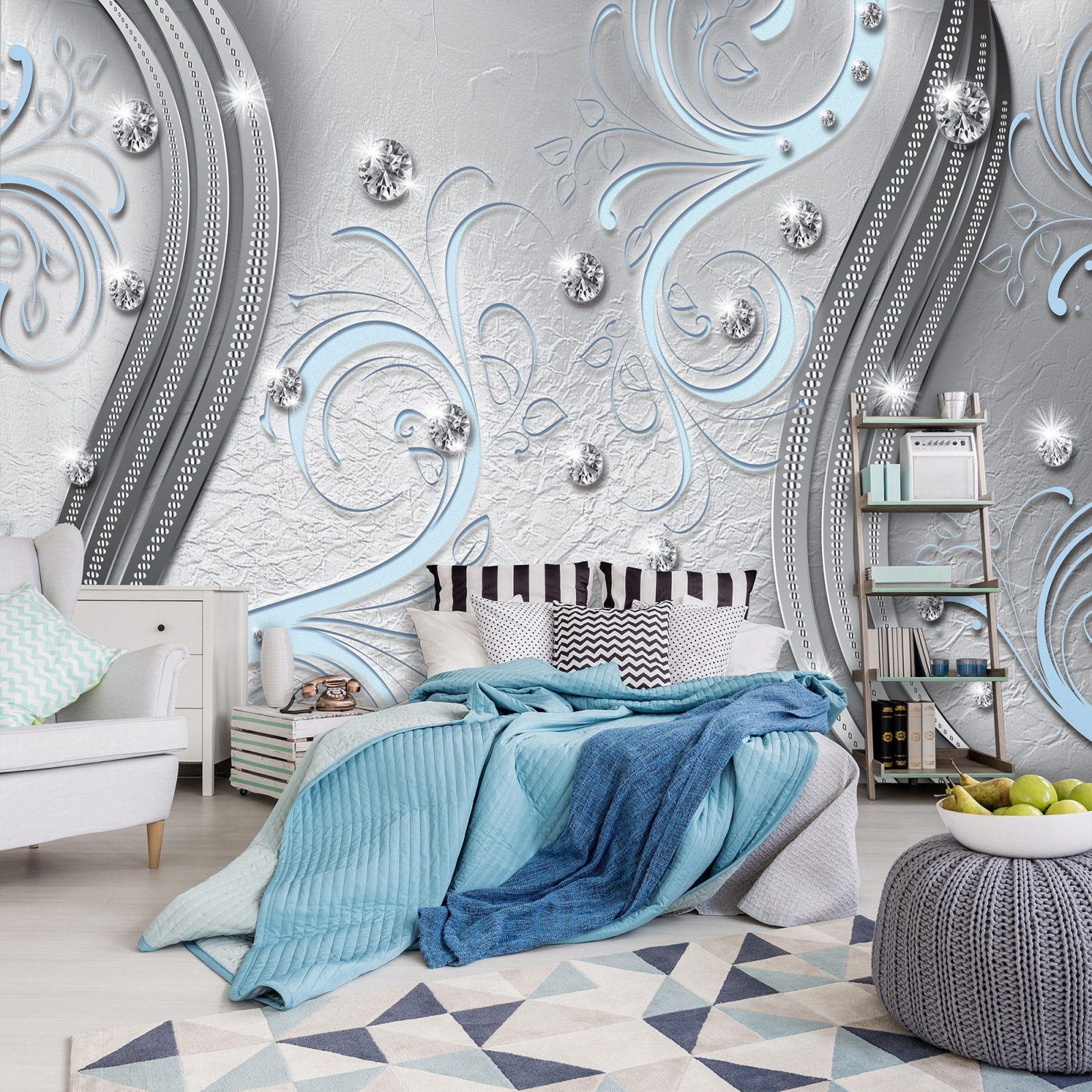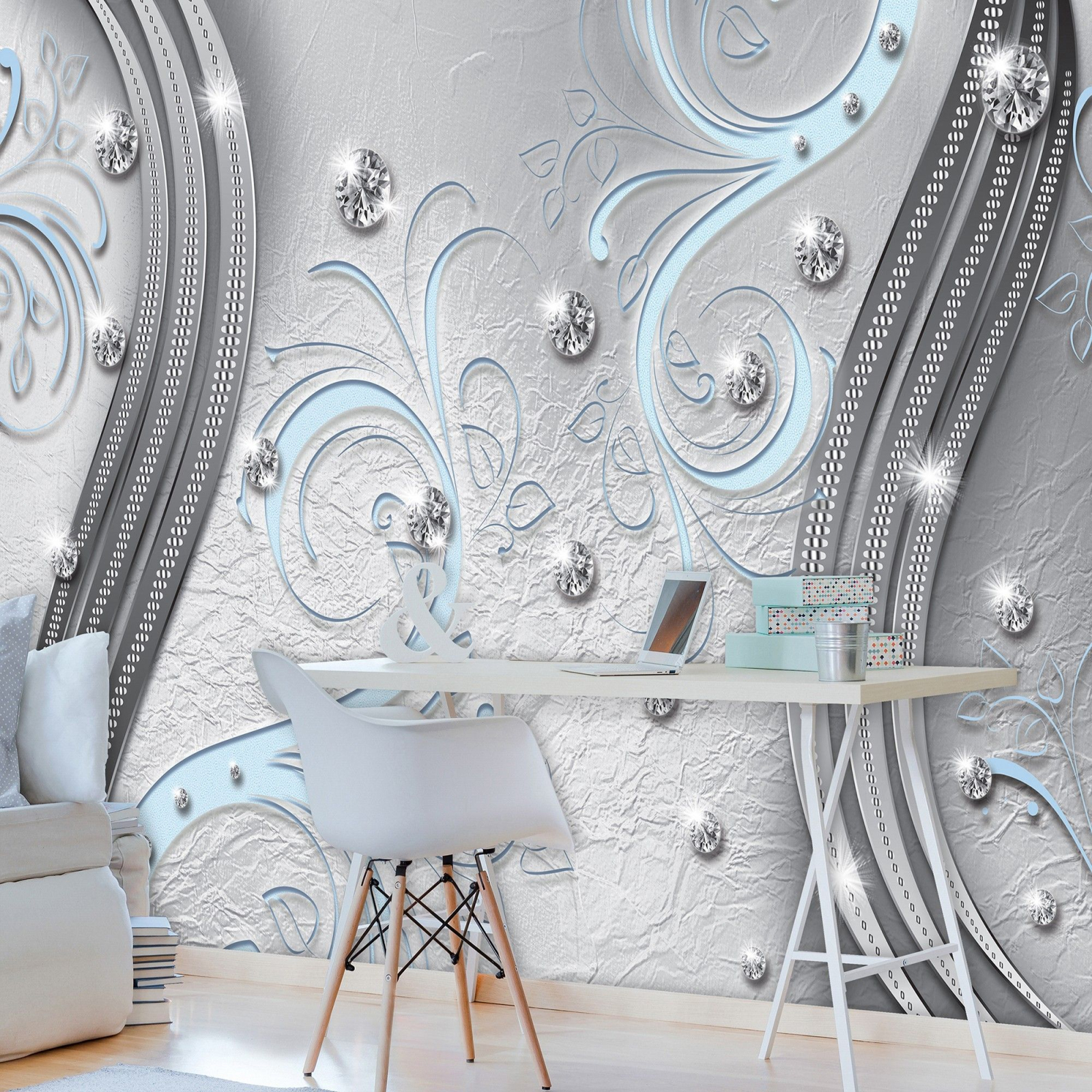 Флис Фототапет 3D Метални орнамени, кристали и диаманти, сиво-синьо