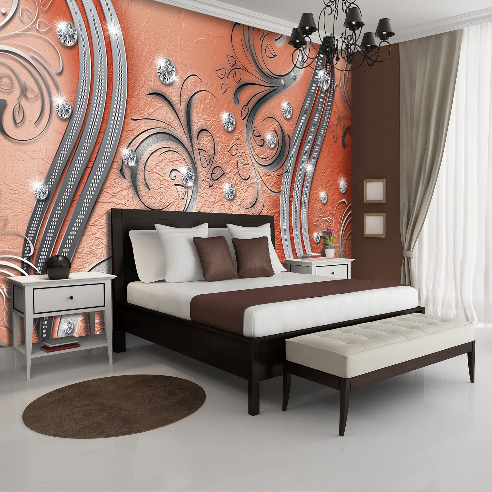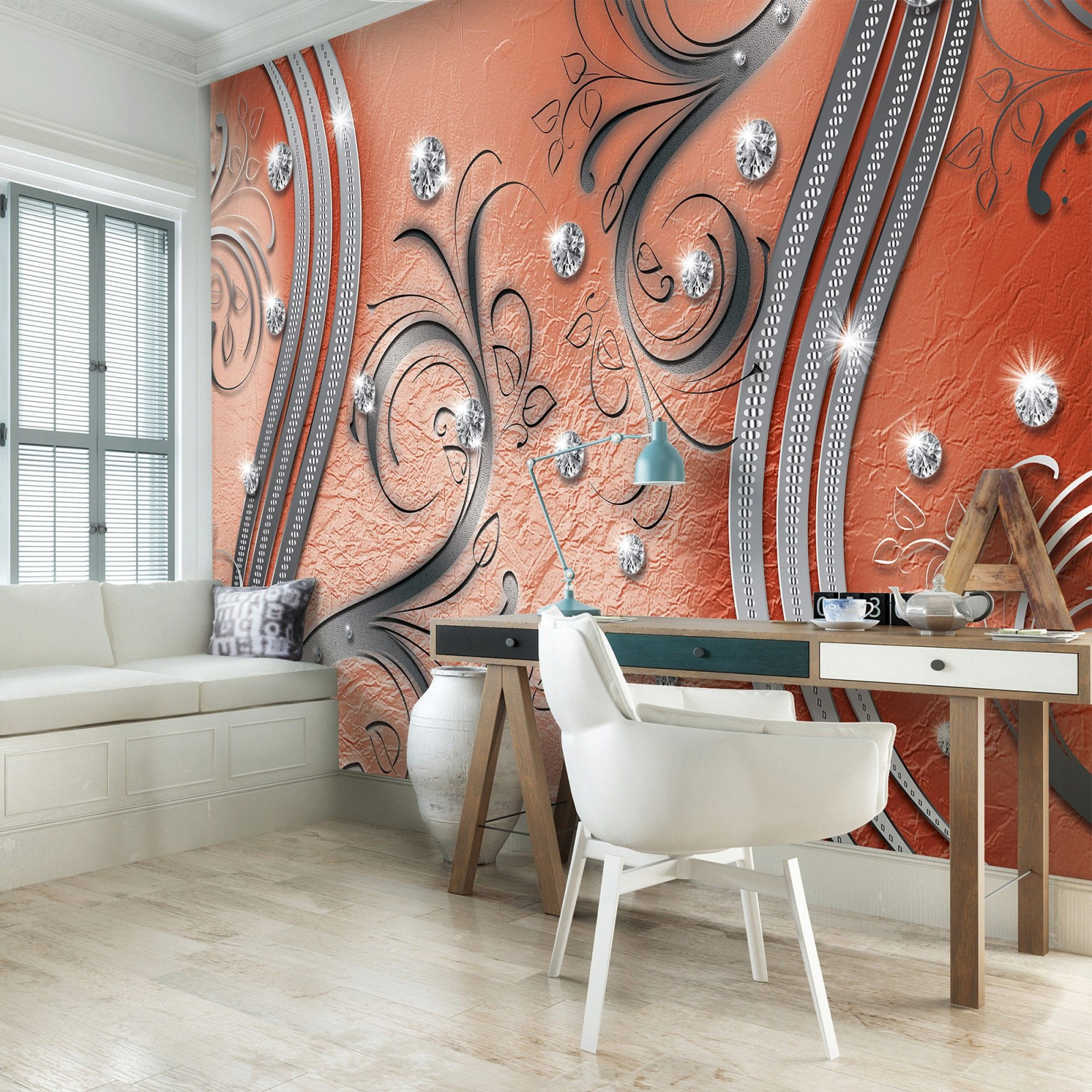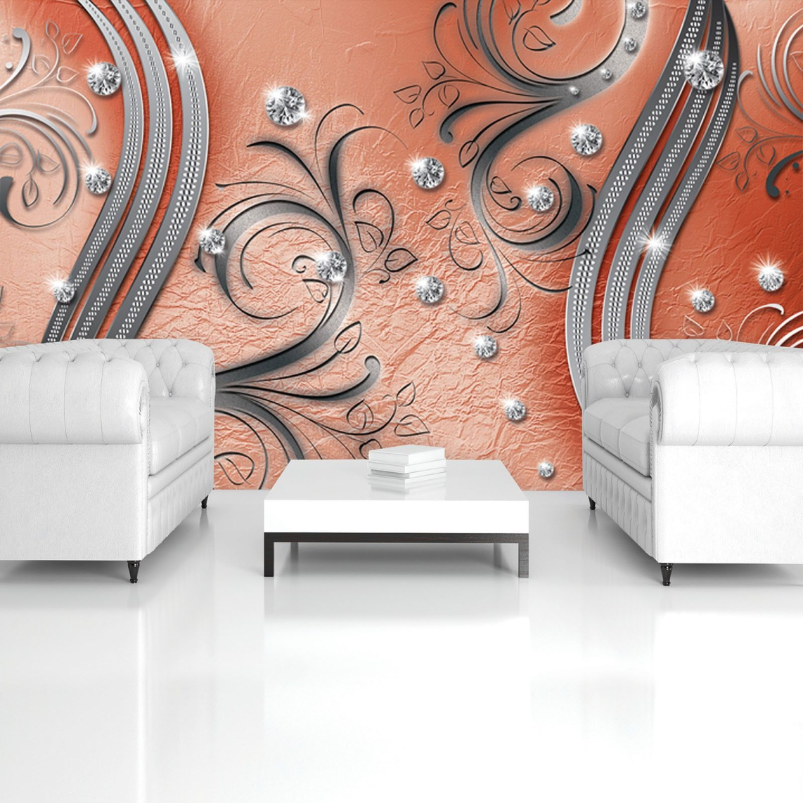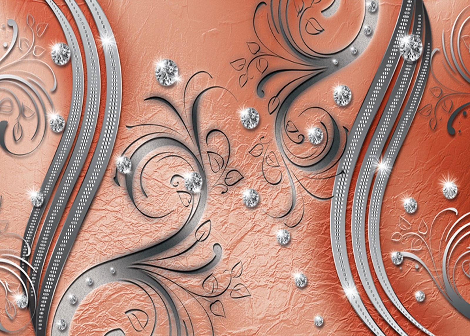 Флис Фототапет 3D Метални орнамени, кристали и диаманти, оранж