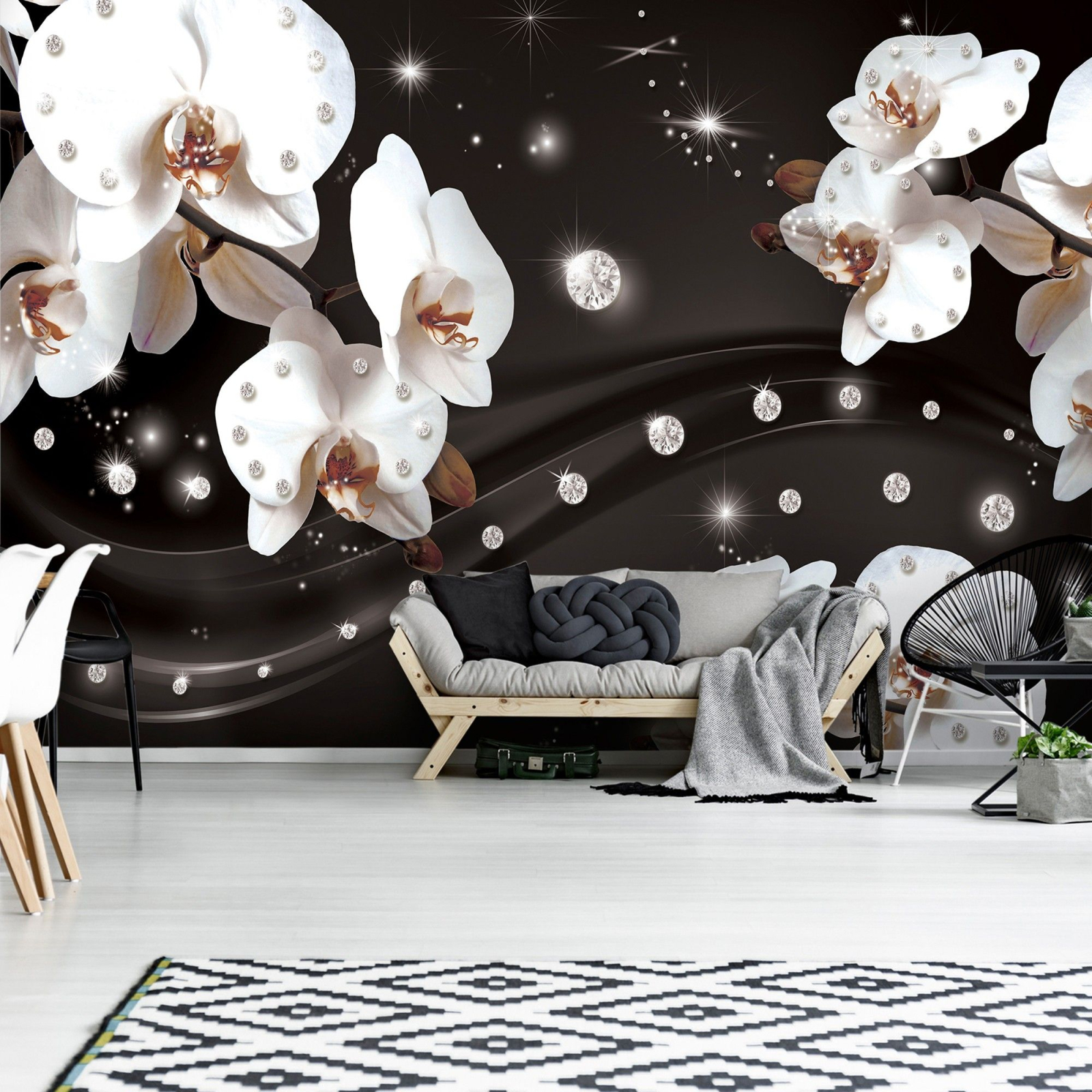Флис Фототапет Орхидеи, диаманти и графит, 3D композиция