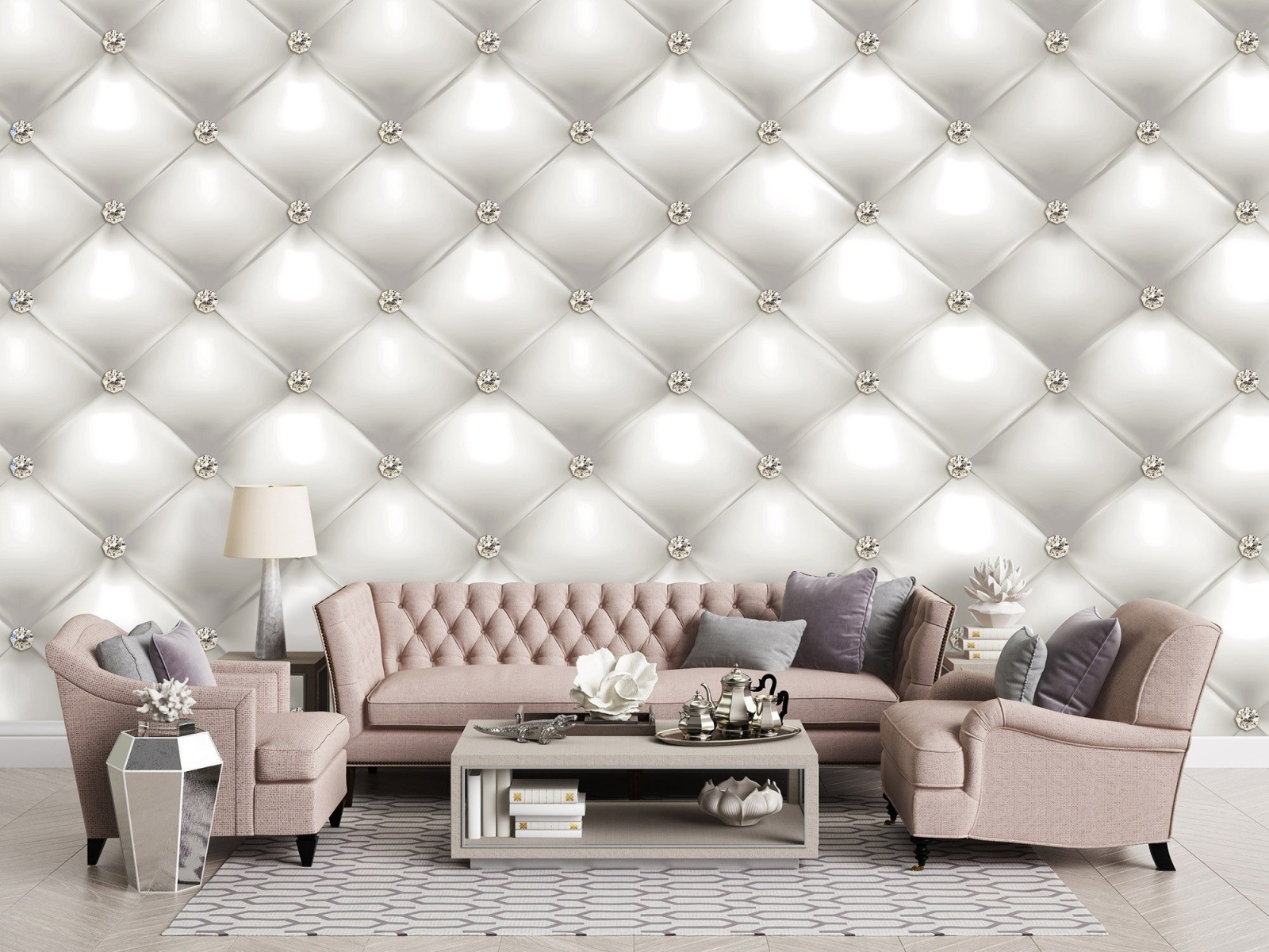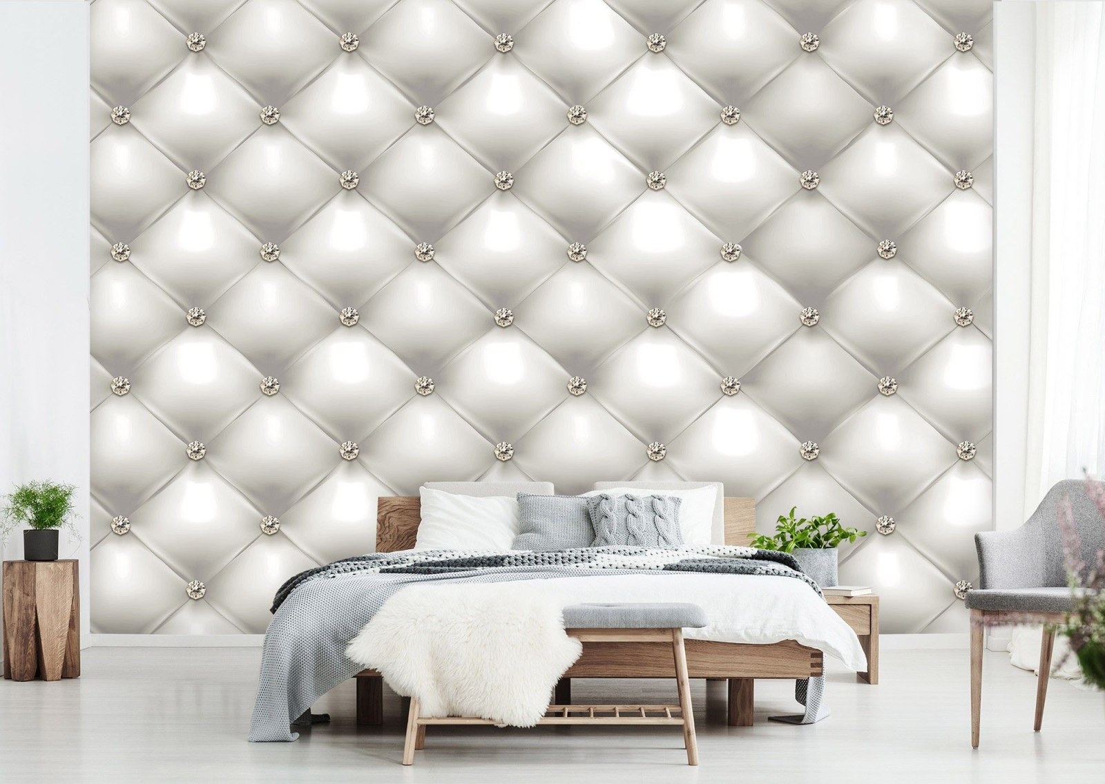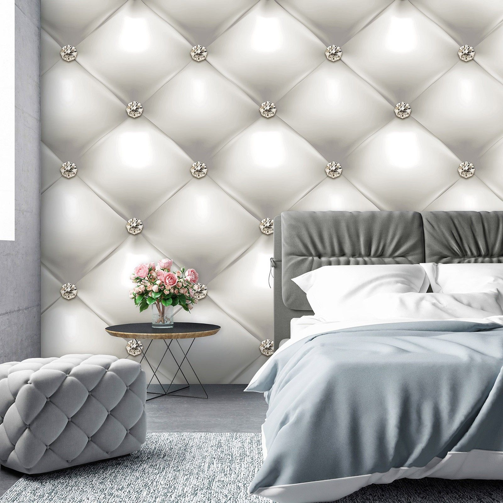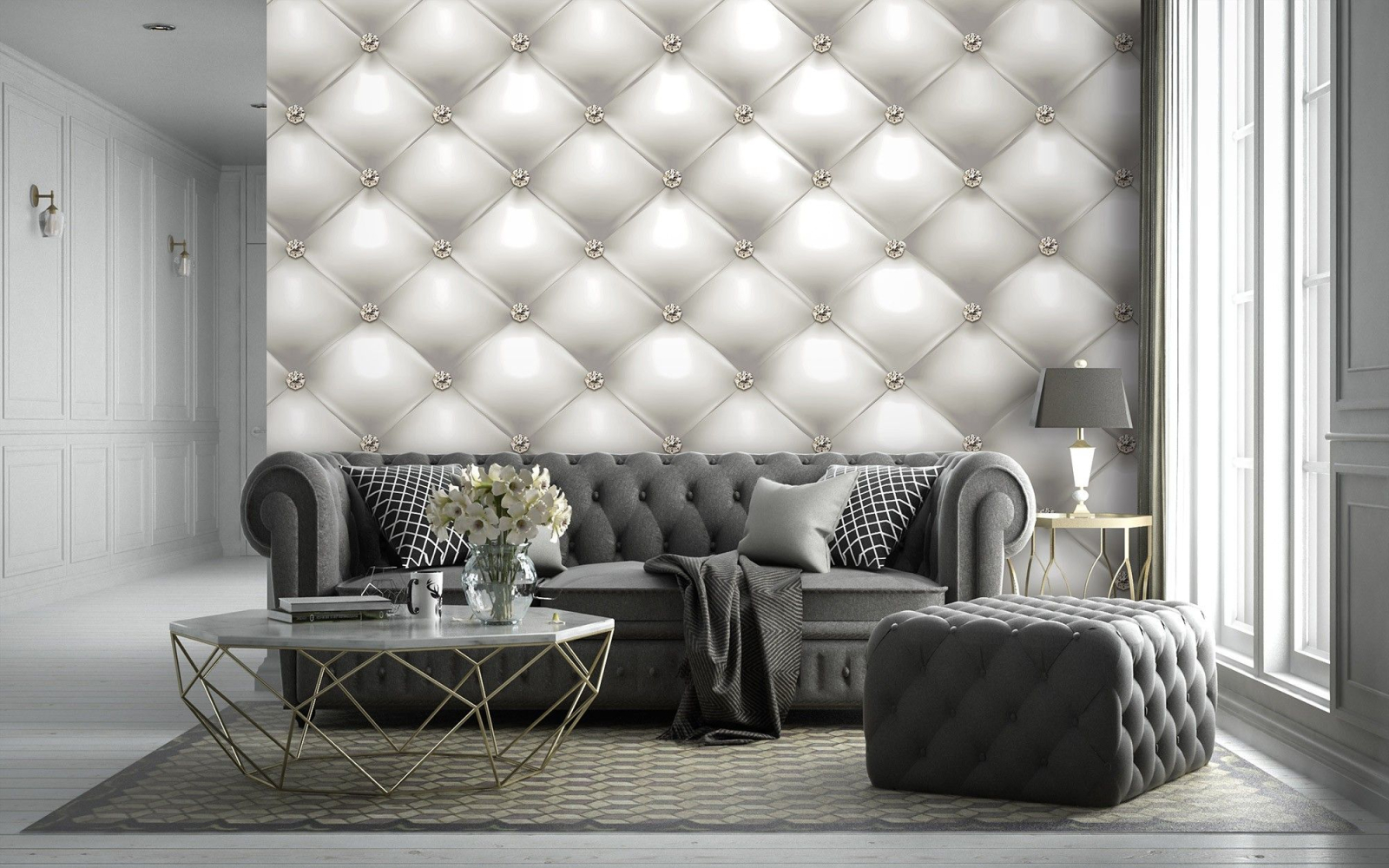 Флис Фототапет 3D Капитонирана кожа с кристали