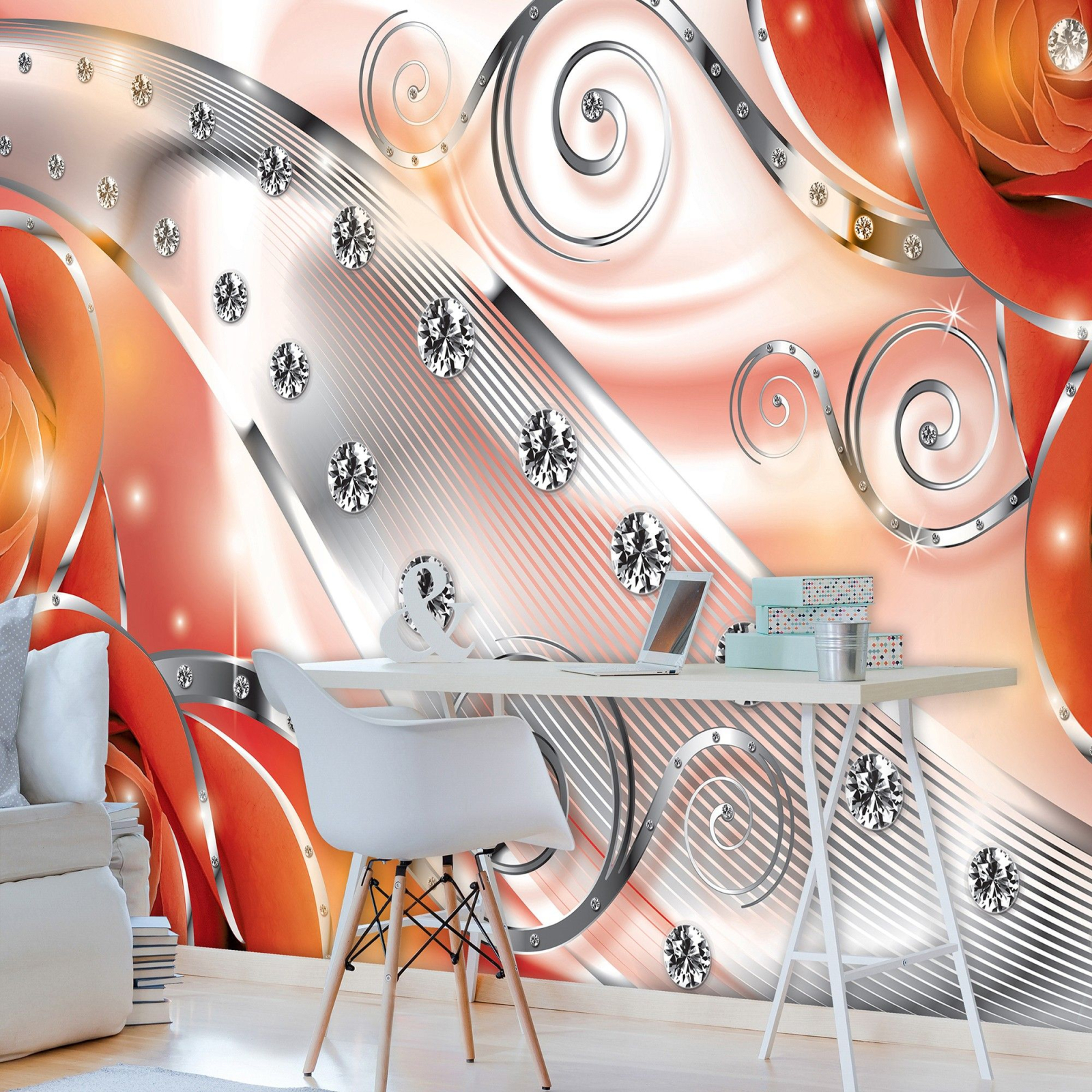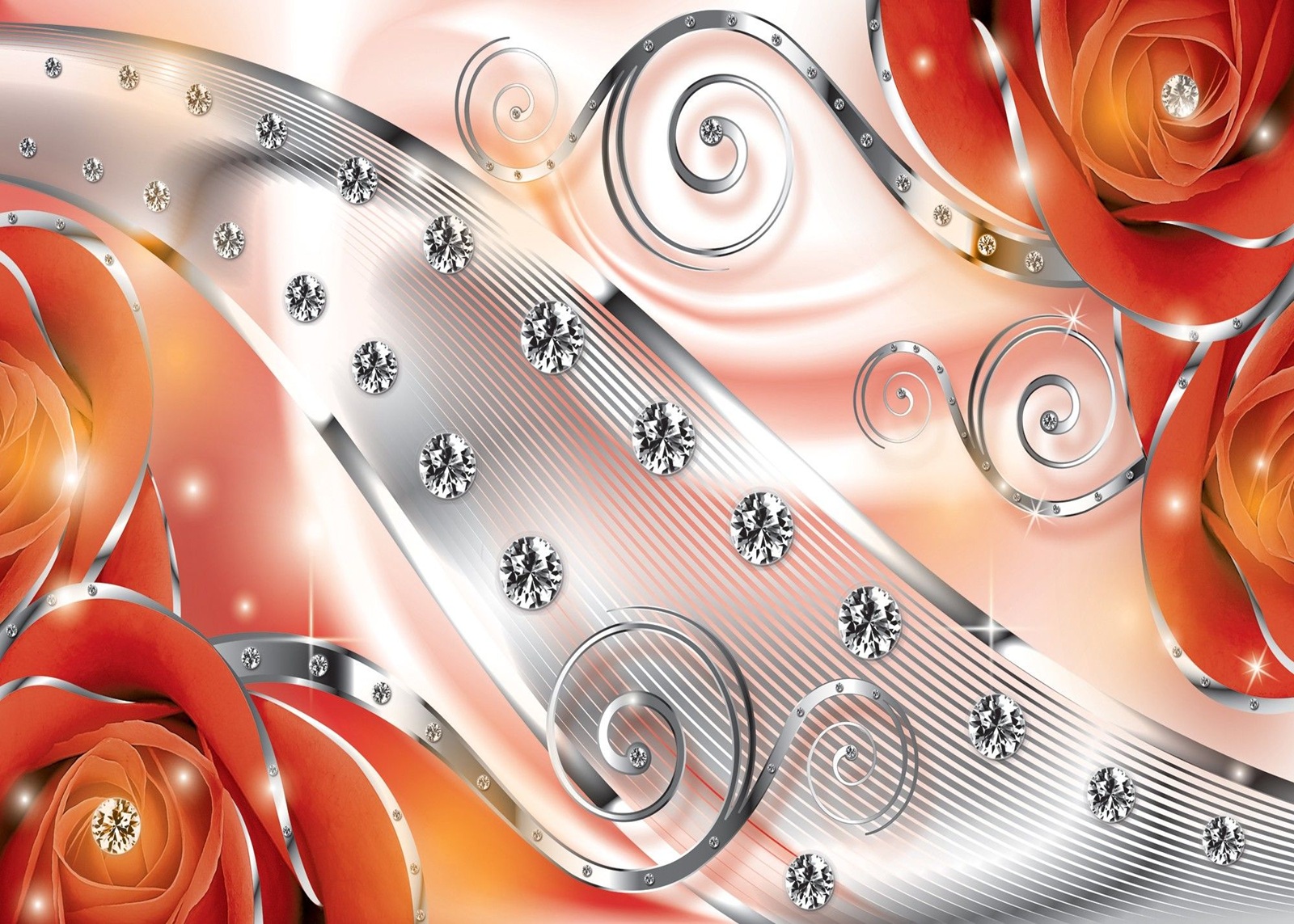 Флис Фототапет 3D орнаменти с рози и диаманти, оранж