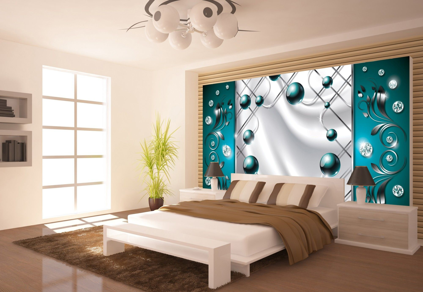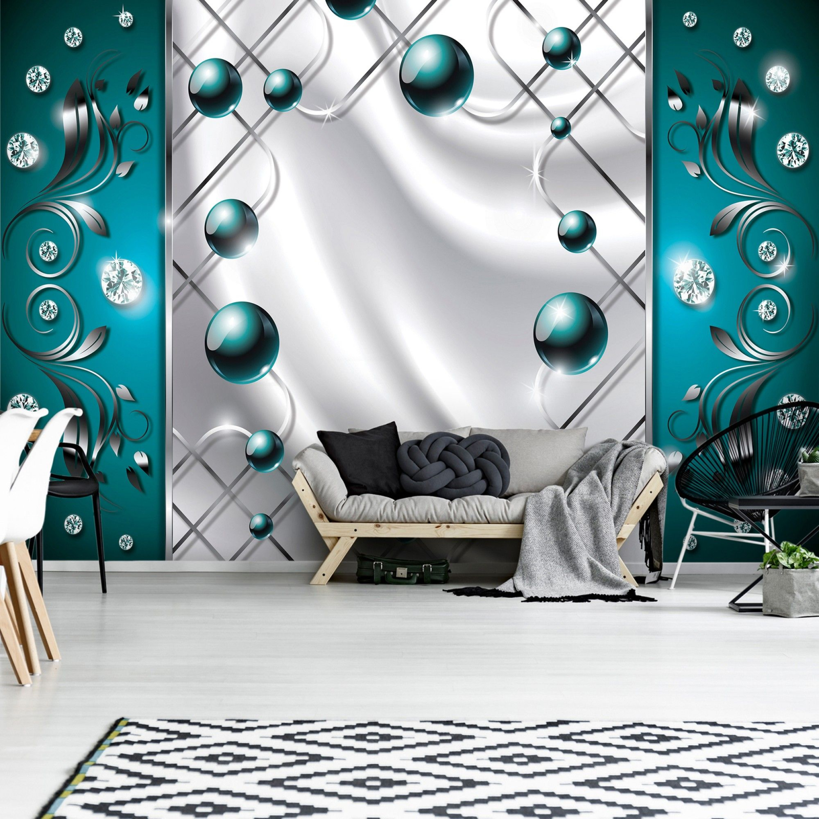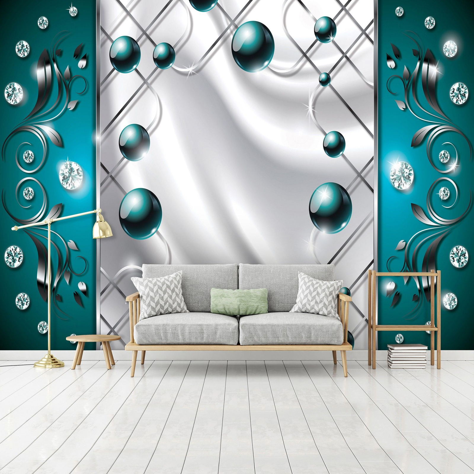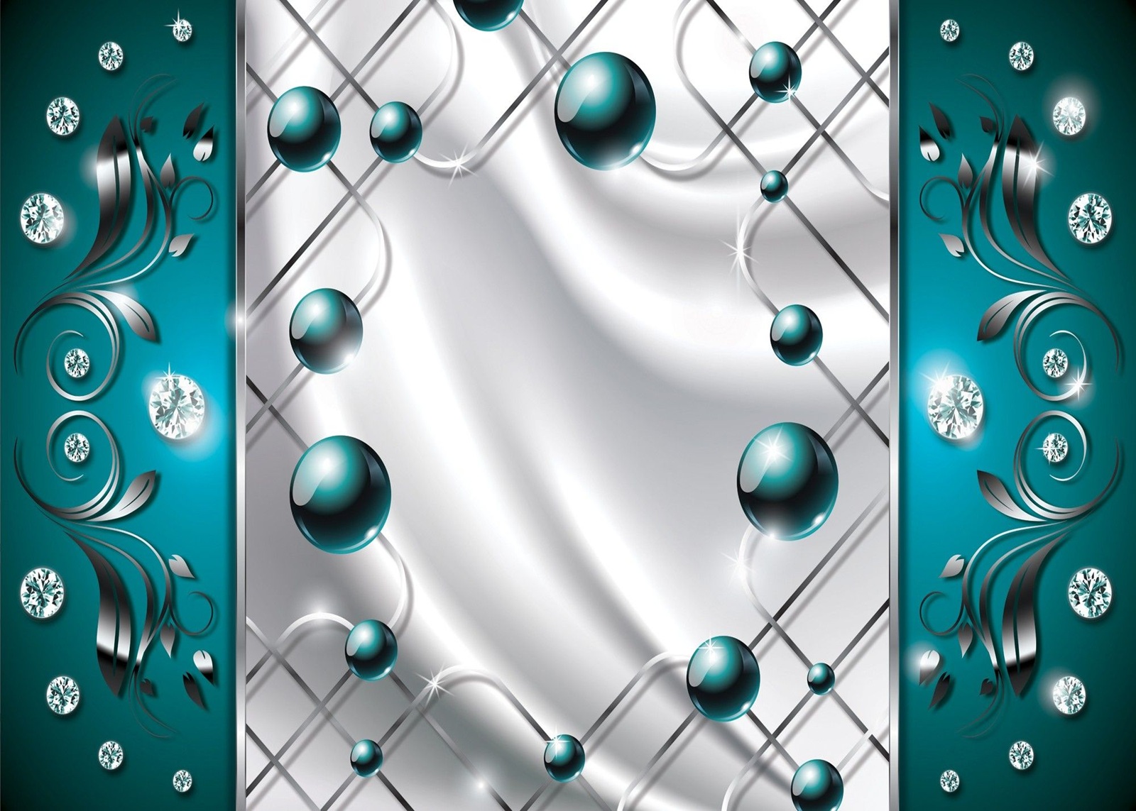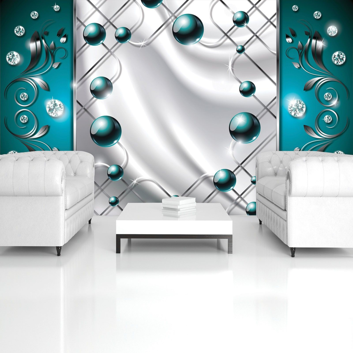 Флис Фототапет 3D абстрактна композиция от перли и диаманти, тюркоазено зелено