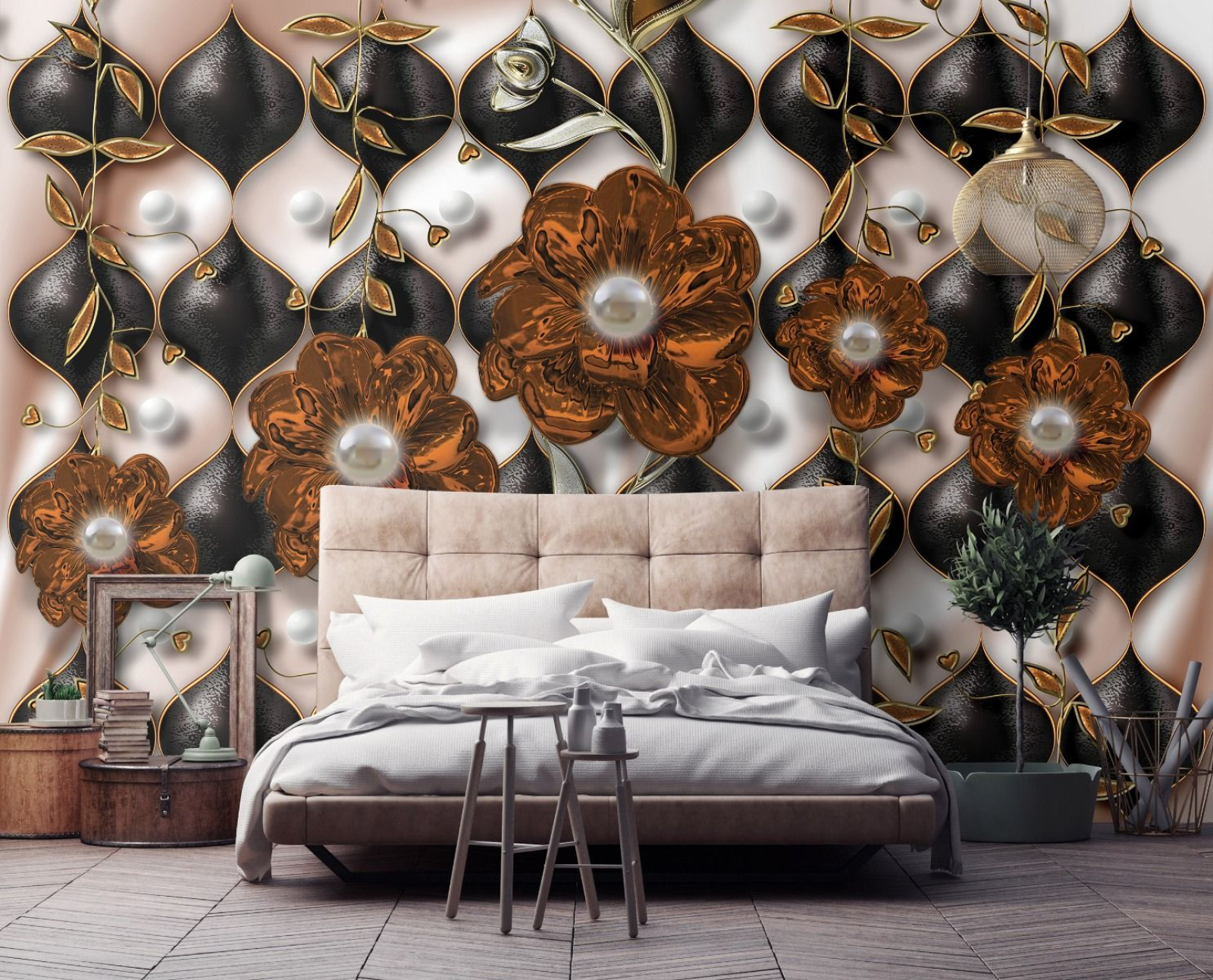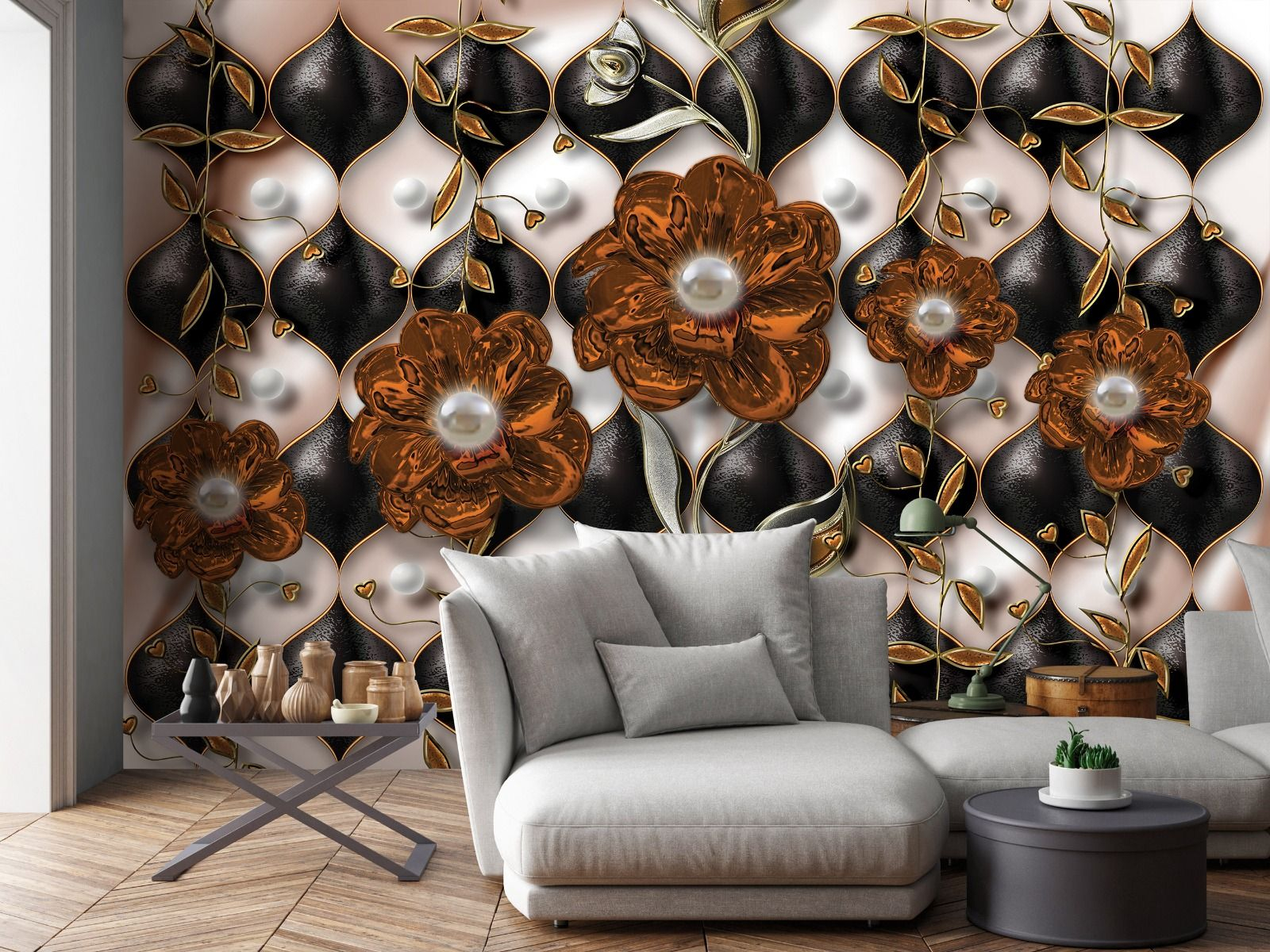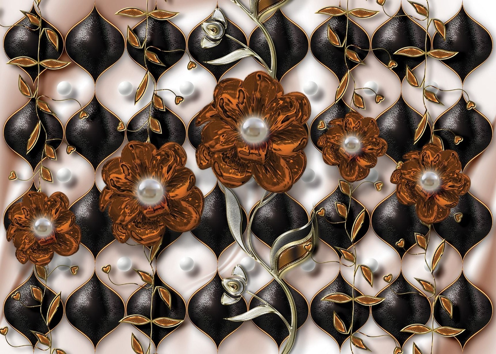 Флис Фототапет 3D композиция от кристални цветя и кожа