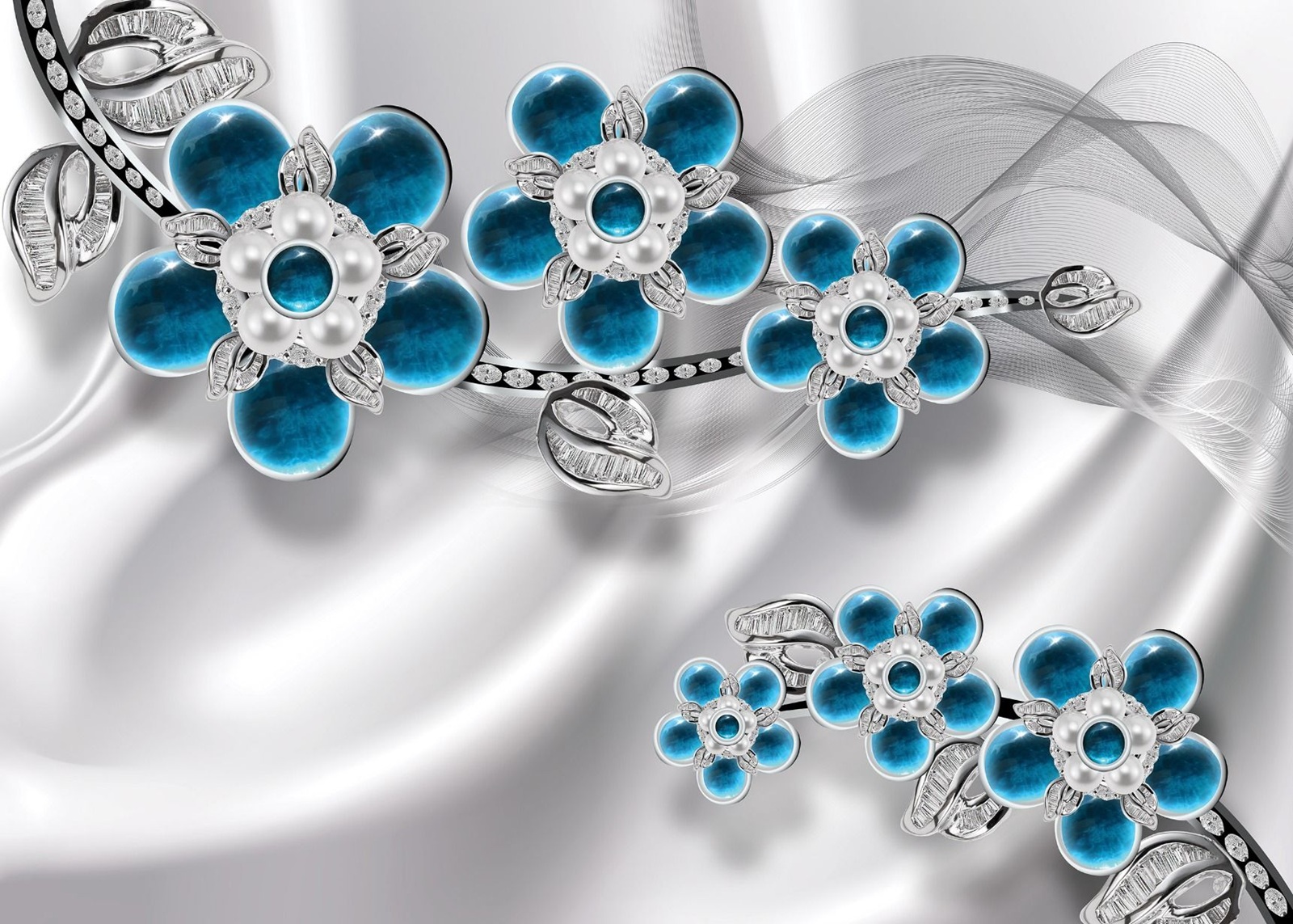 Флис Фототапет Кристали, диаманти и сребро, 3D композиция