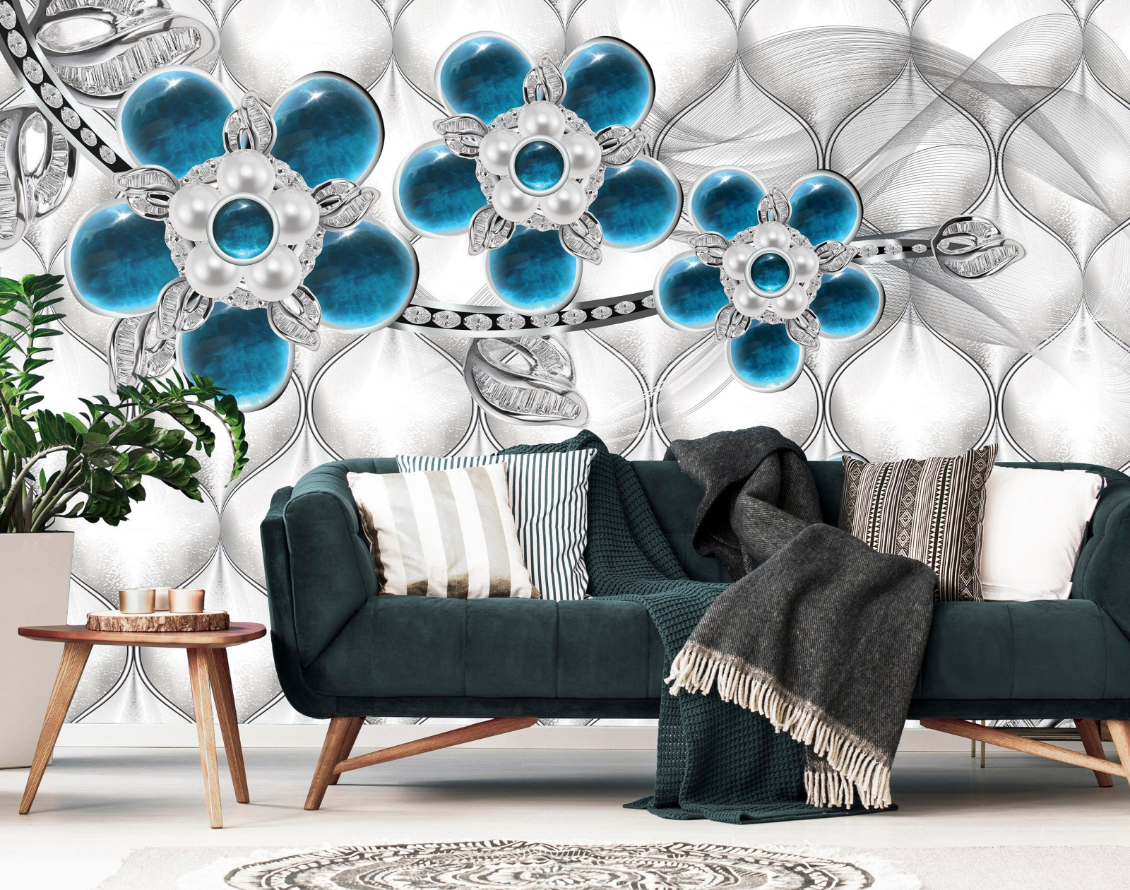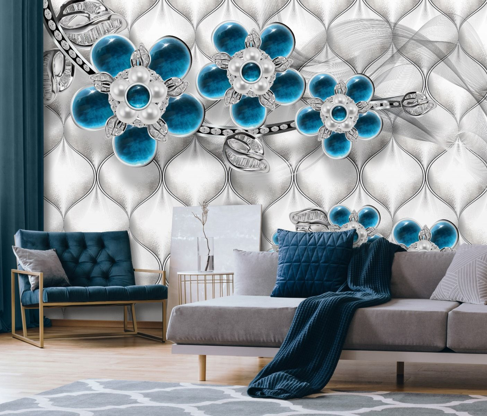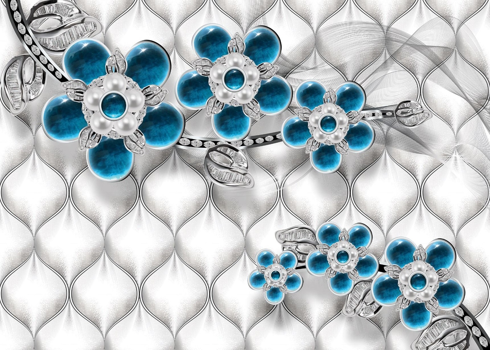 Флис Фототапет Кристали, диаманти и сребро, 3D композиция