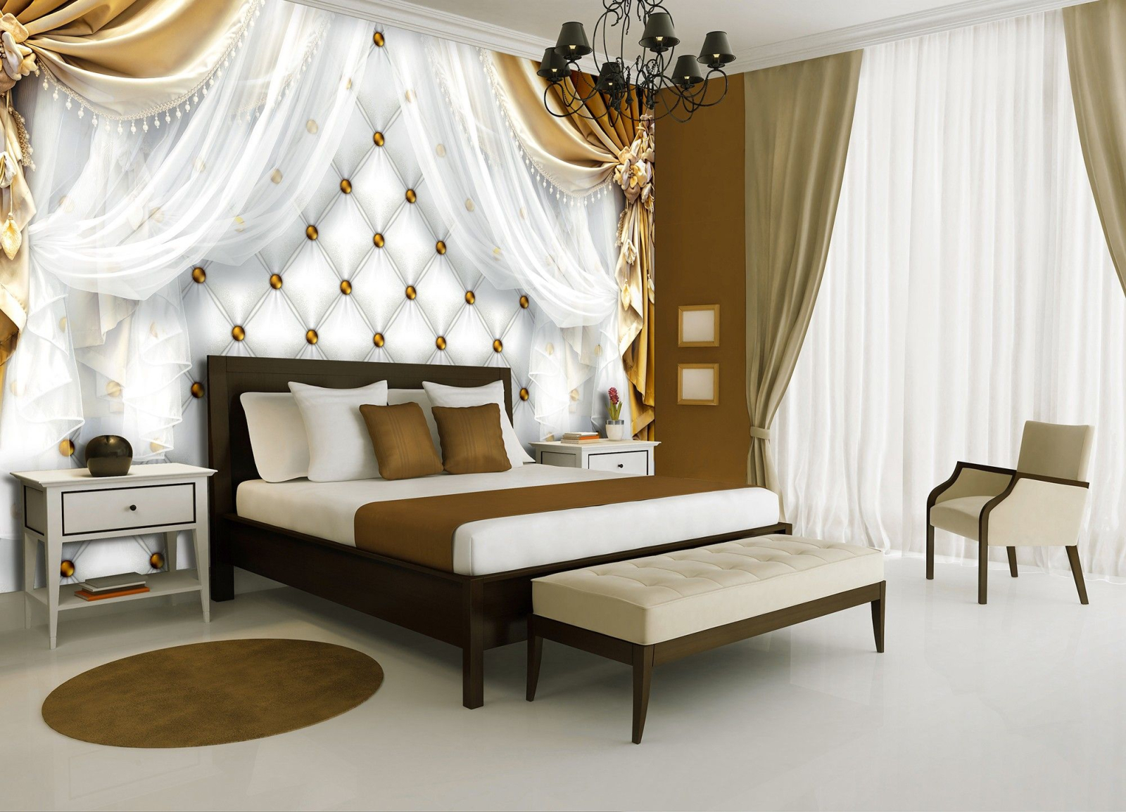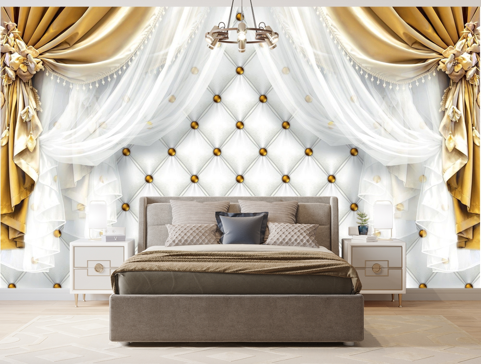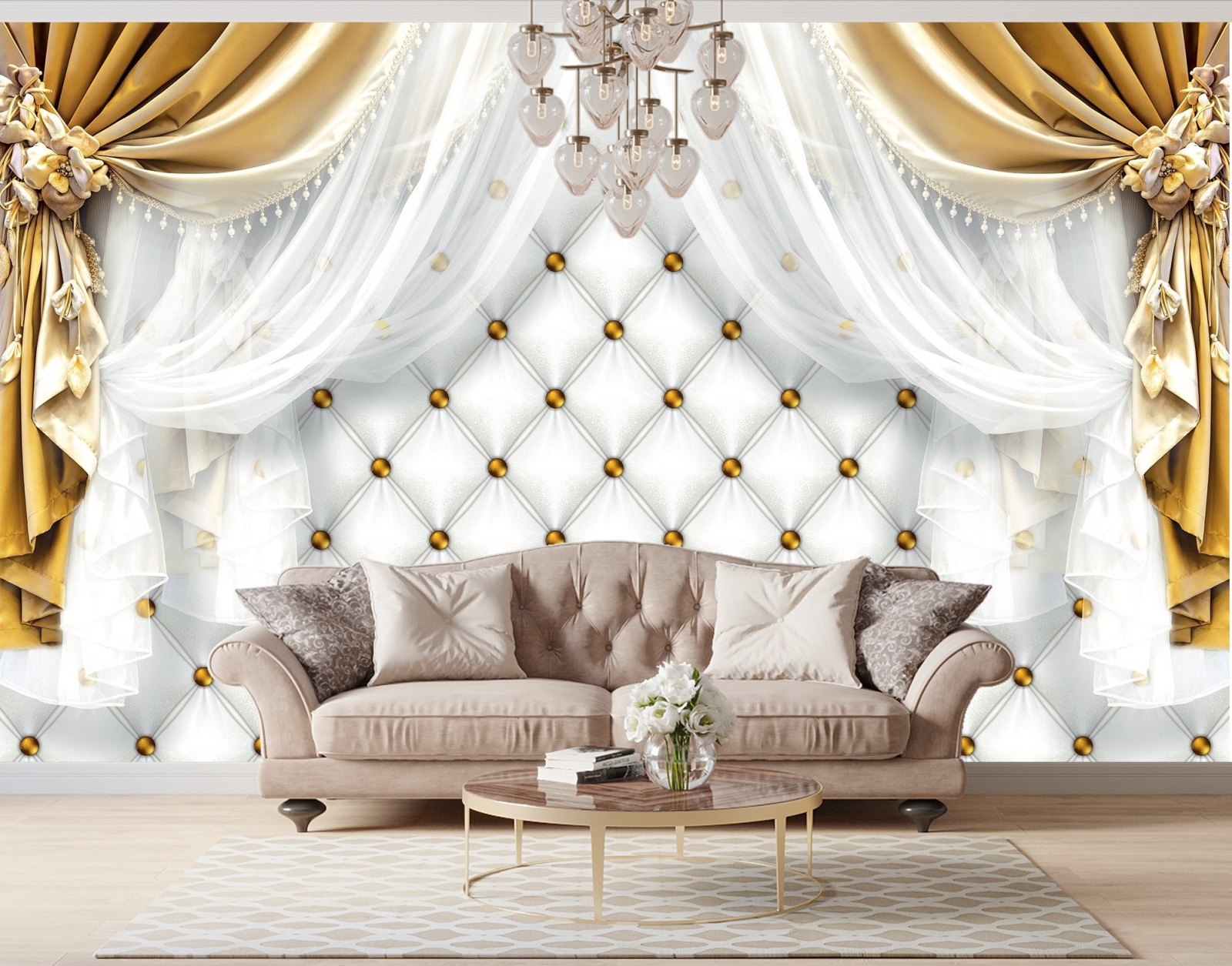 Флис Фототапет Завеси златно