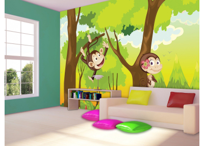 Детски Флис Фототапет JUNGLE Маймунките играят