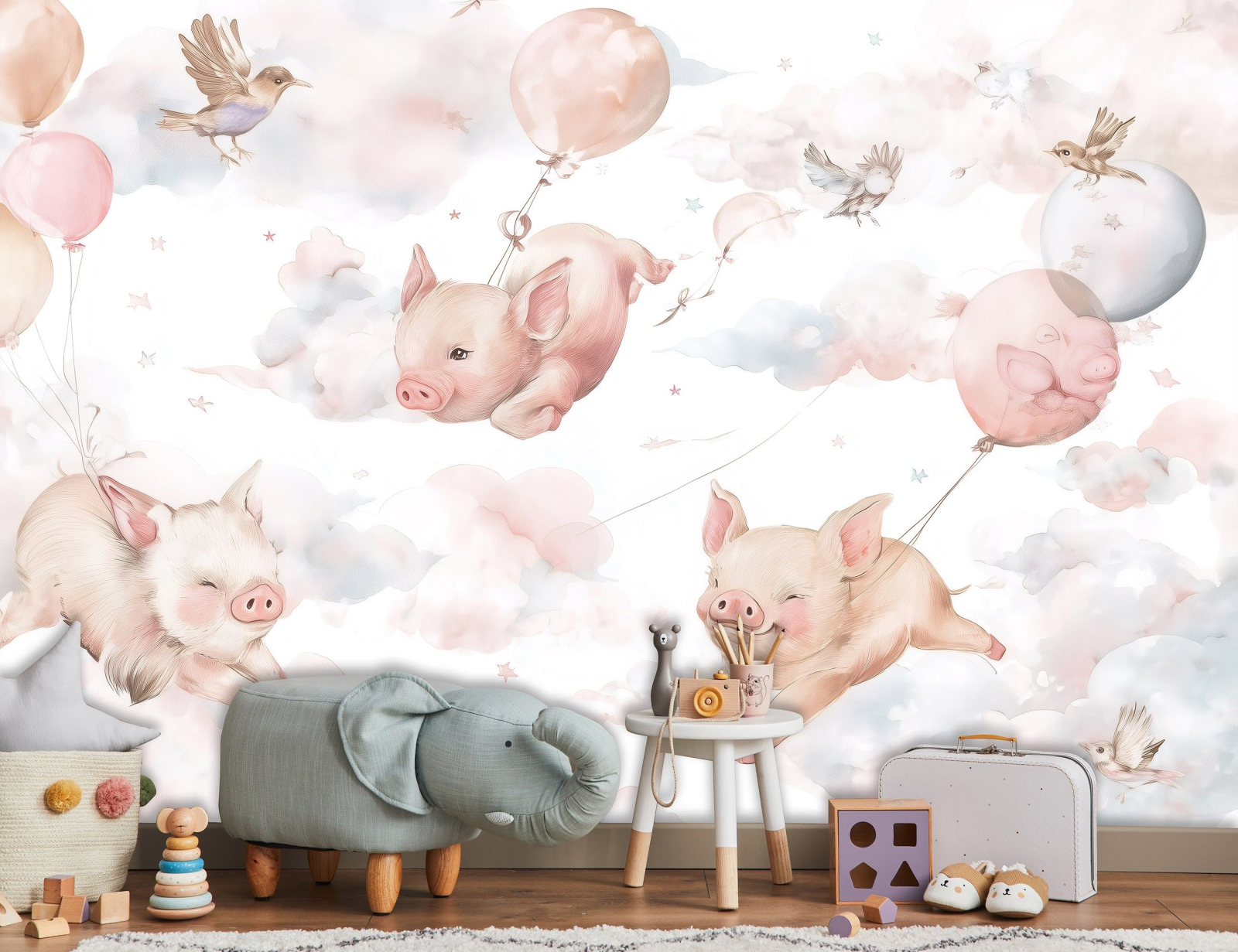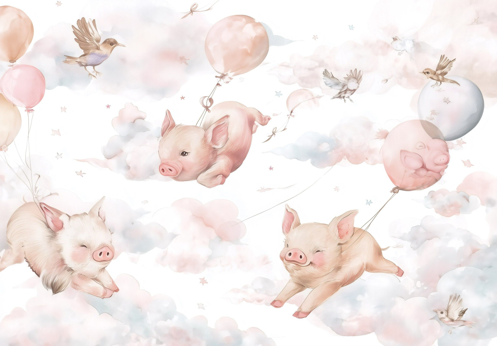 Детски Флис Фототапет AIR TRAVEL-Сладки прасенца с балончета