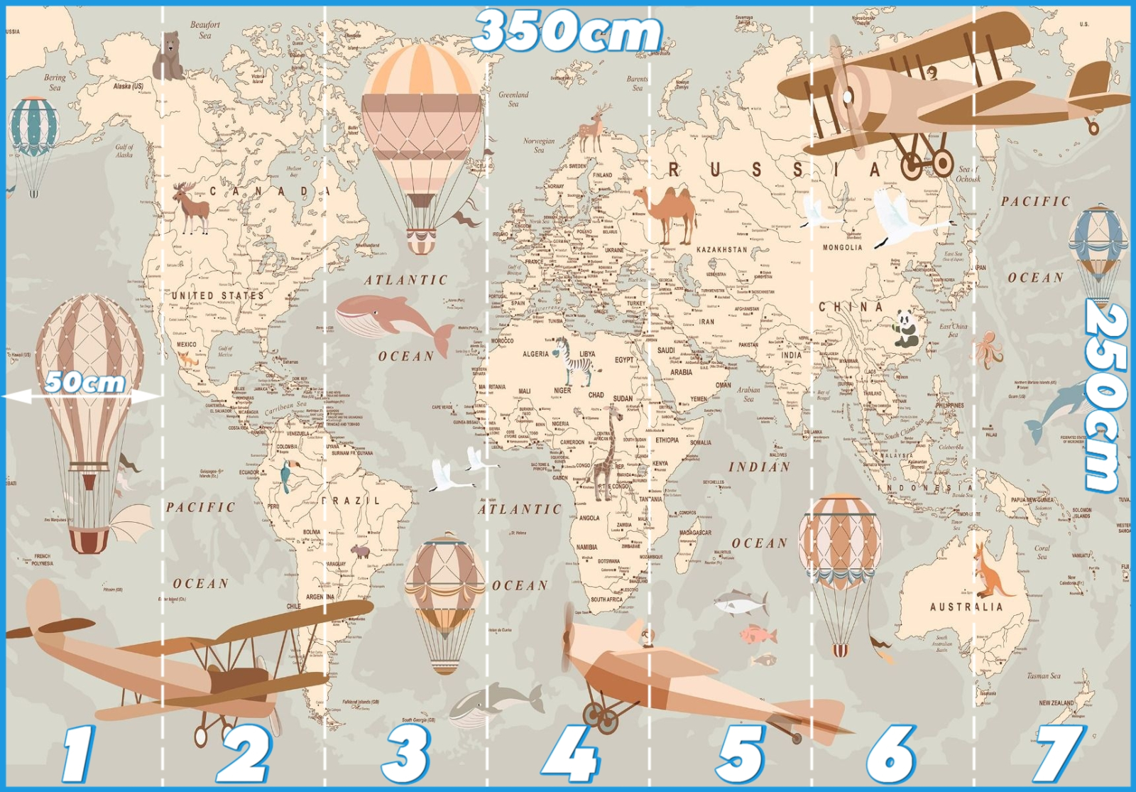 Части: номерирани вертикални ленти, широки 50cm, лепят се една до друга, без припокриване