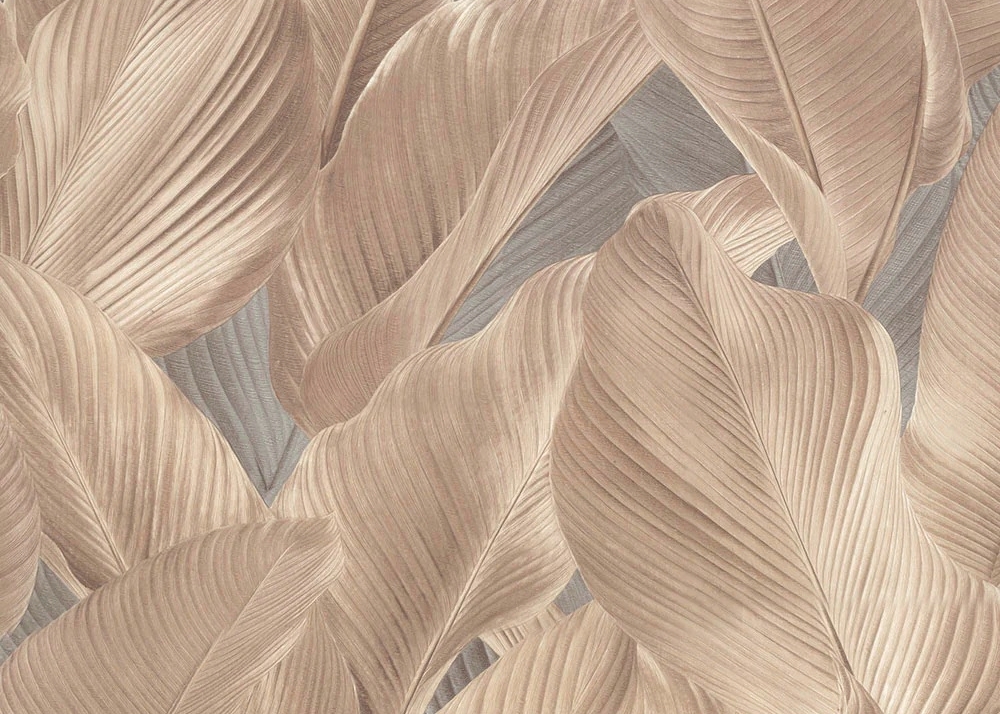 Тапет тежък винил на флис основа, Листа бежово -кафяво и таупе, перлено