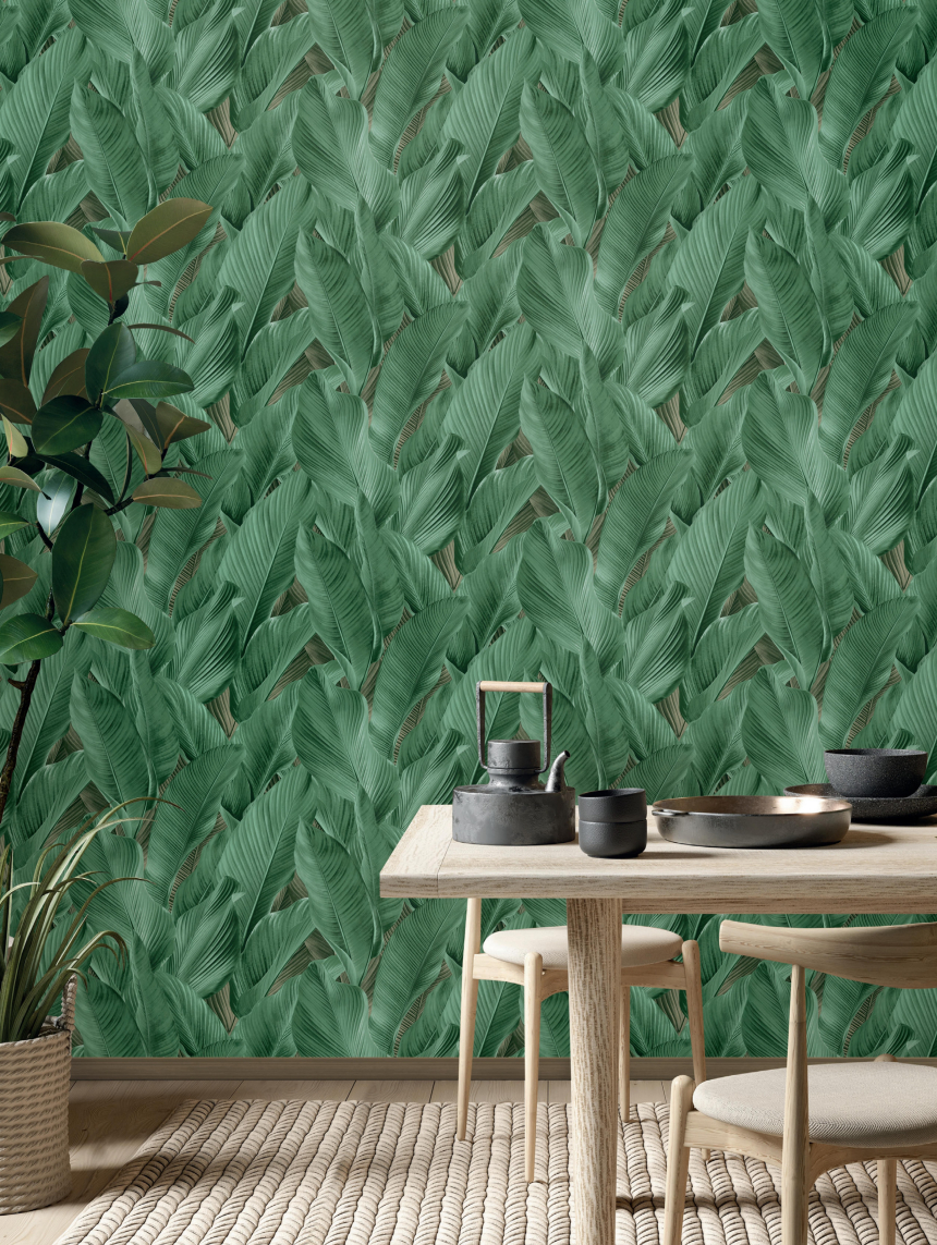 Тапет тежък винил на флис основа, Листа зелено, перлено