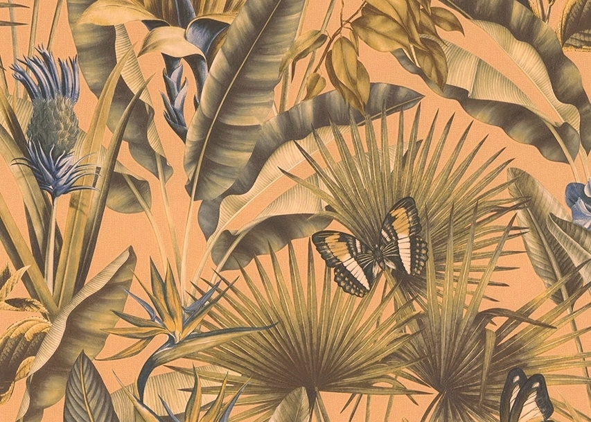 Тапет тежък винил на флис основа, Тропическа растителност- карамел