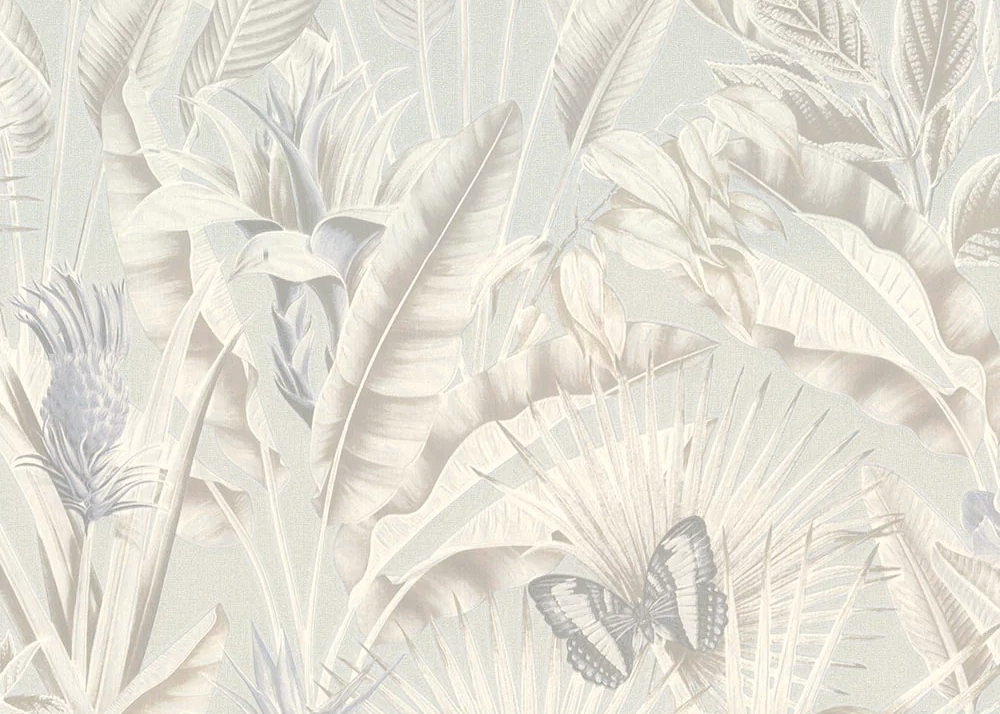 Тапет тежък винил на флис основа, Тропическа растителност-сиво